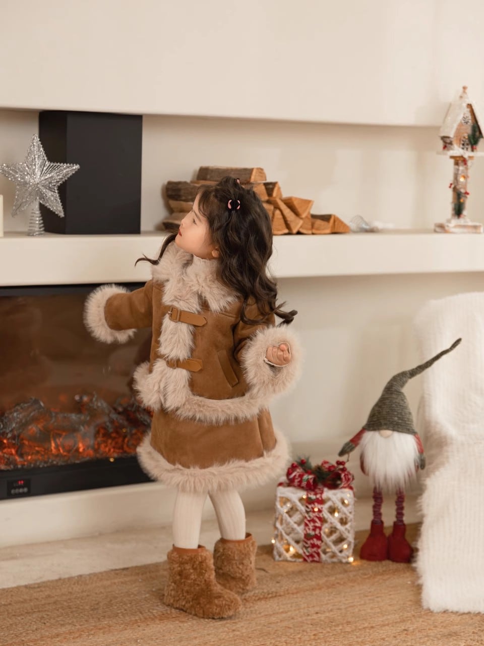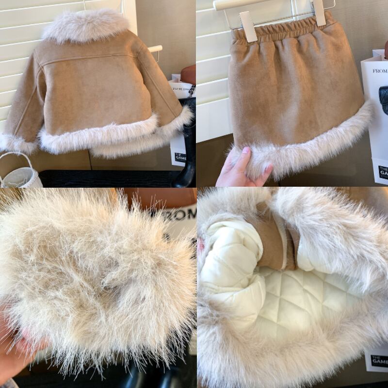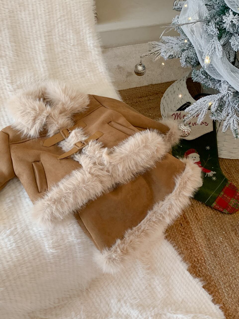 【海外からの取り寄せ】2023秋冬新作 韓国風 子供服 キッズ アウター コート ファー コート裏キルティング ジャケット スエード調 #[kids680_33800]【送料込み】【250923】