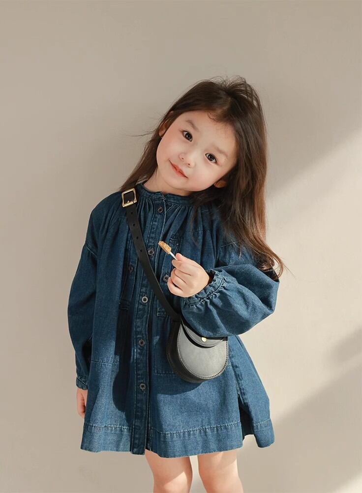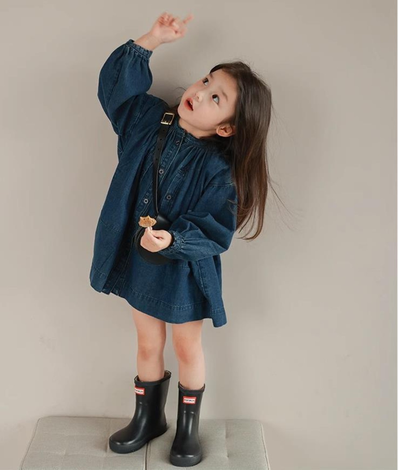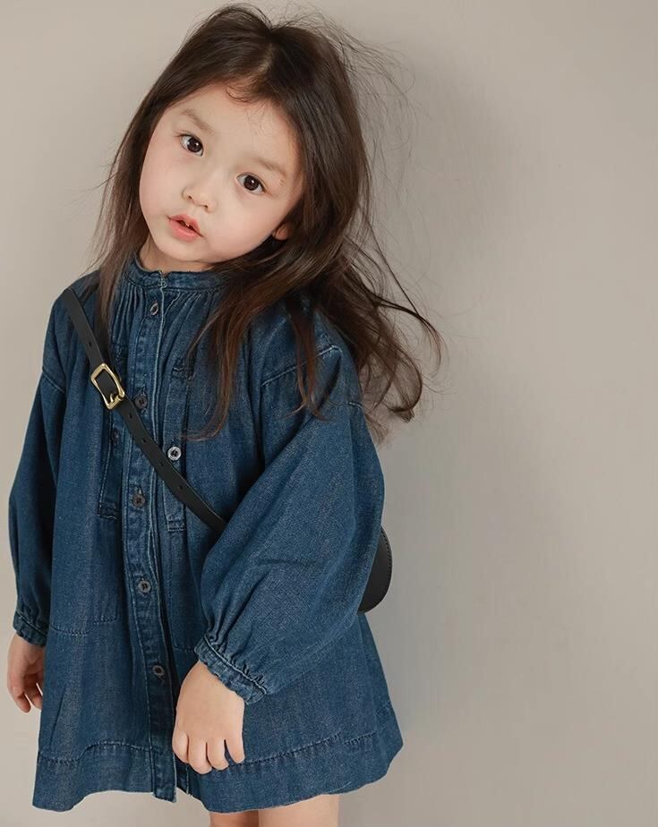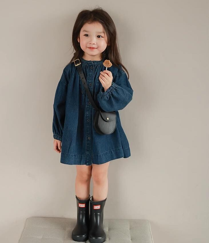 【海外からの取り寄せ】2024新作 韓国子供服 子供 キッズ ワンピーストップス デニム かわいい 長袖 定番 女児 ブルー アウター #[kids687_19800]【送料込み】【250923】