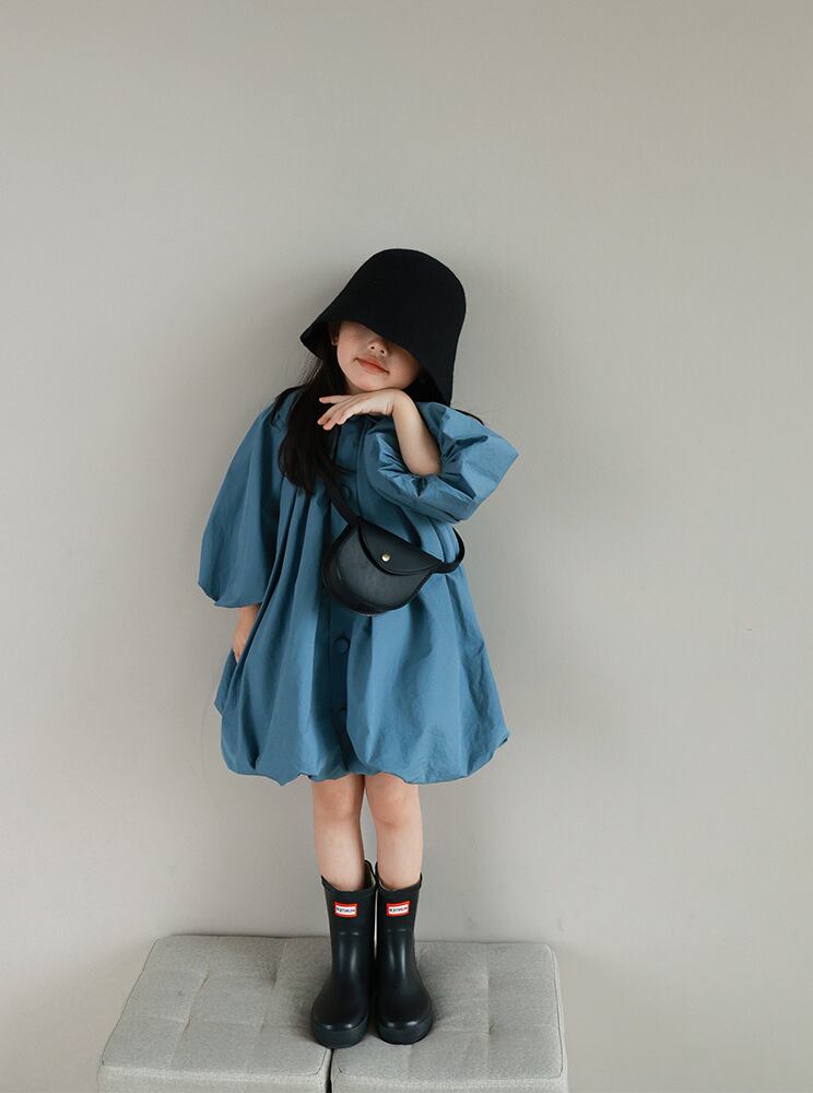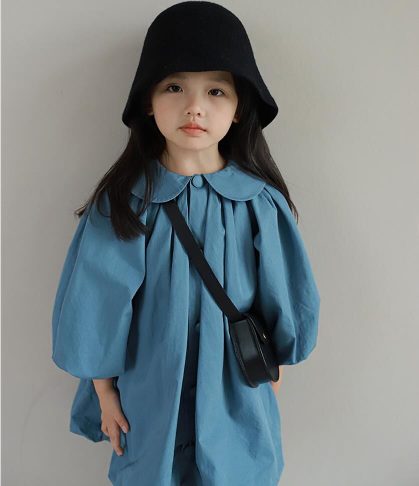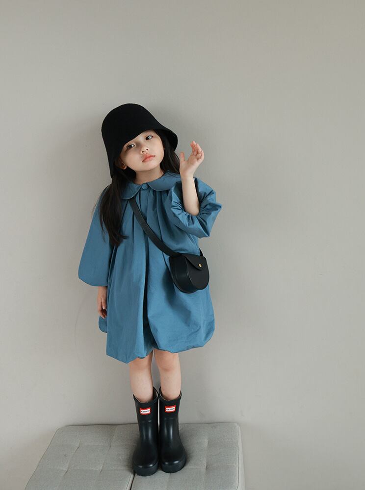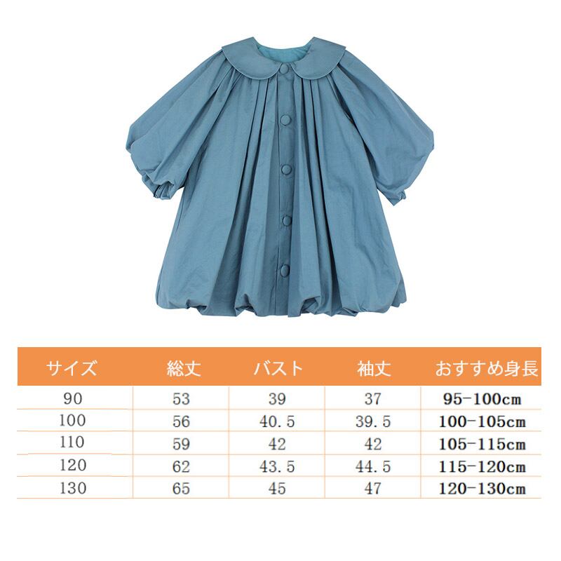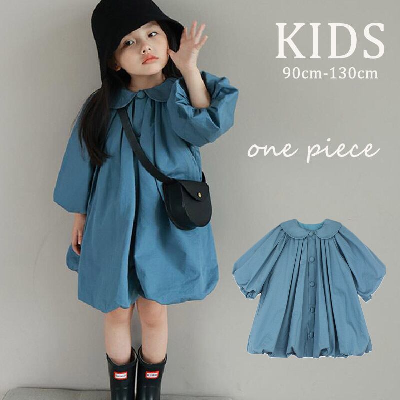 【海外からの取り寄せ】2024新作 韓国子供服 子供 キッズ ワンピース 長袖 ブルー 青 襟付き バルーン袖 130 120 110 100 90 #[kids683_17800]【送料込み】【250706】