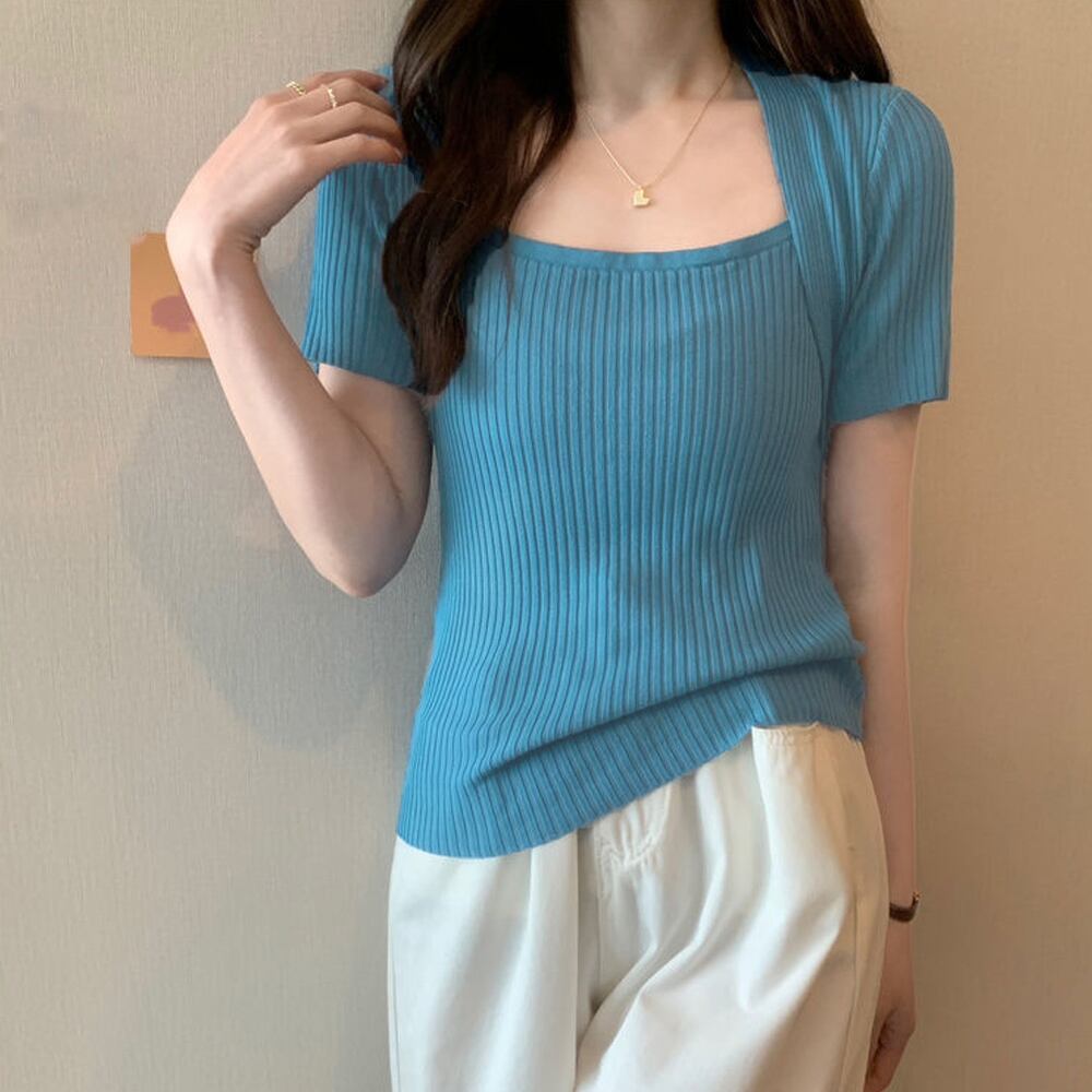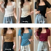 【日本倉庫からの発送】 リブサマーニット スクエアネック 韓国風 #[85YN-900463_13500]【送料込み】【250712】