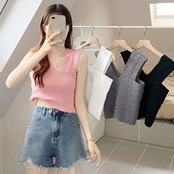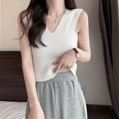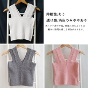 レディース ノースリーブ ショート丈トップス Vネック 重ね着 リブニット 韓国ファッション ニットベスト 通勤通学