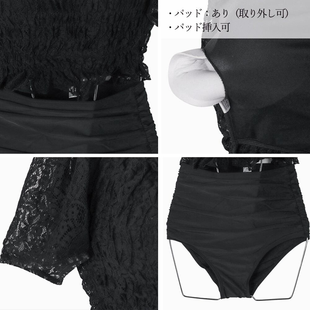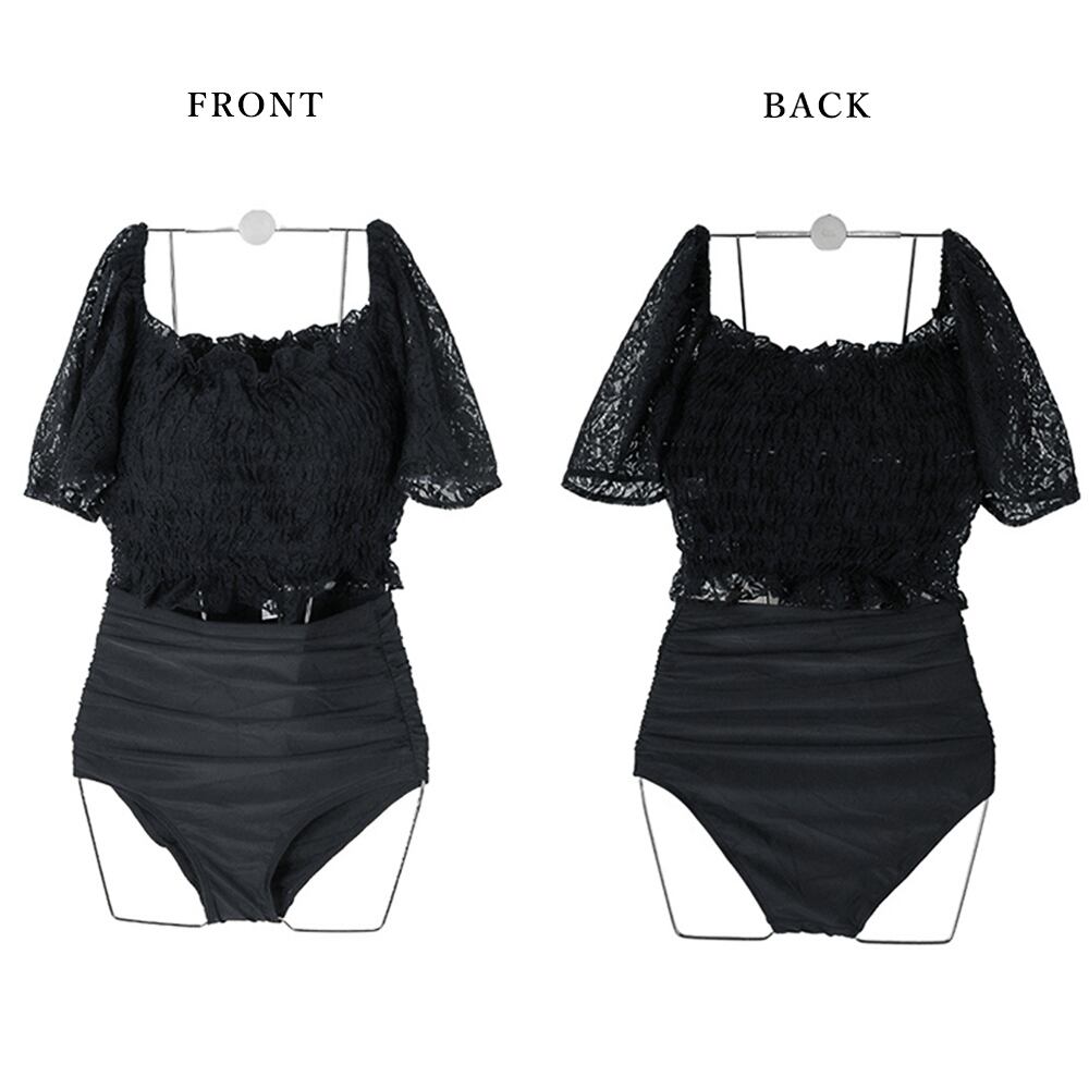 レースシャーリングトップス ハイウエストショーツ スイムウェア 露出控えめ 2wayビキニ 20代30代40代 ママ水着