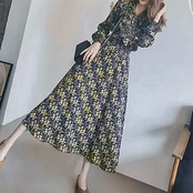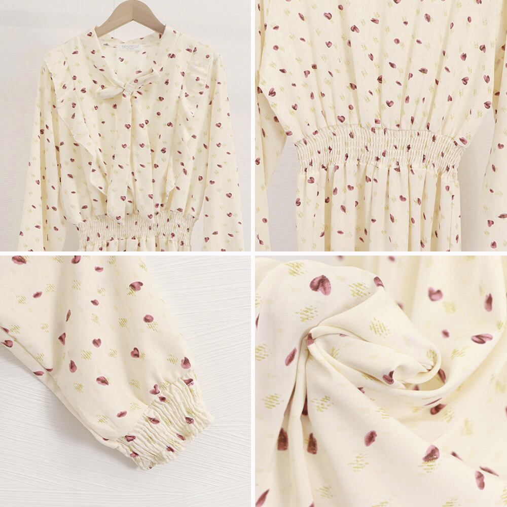 【日本倉庫からの発送】 小花柄ボウタイワンピース ハイウエスト #[1YDG-006_18400]【送料込み】【250712】