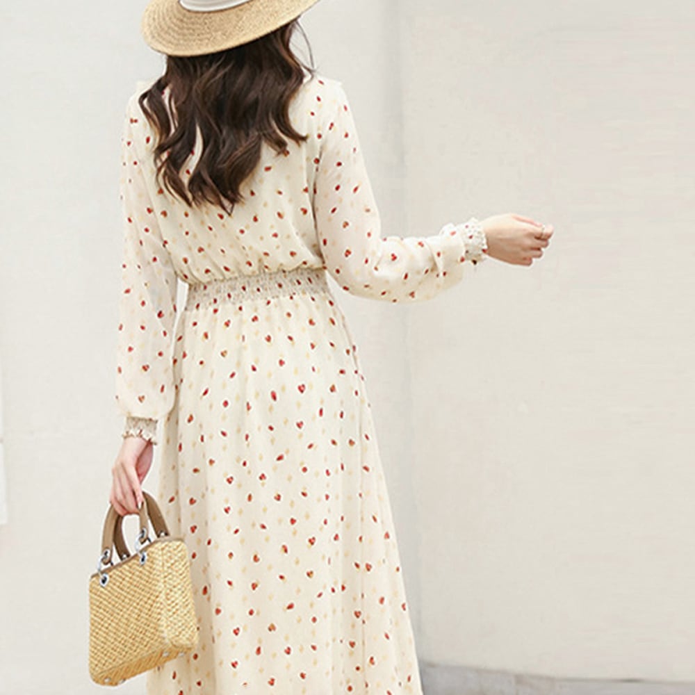 シフォンワンピース 大人可愛い 体型カバー フレアワンピ ウエストシャーリング ロングワンピース 長袖リゾートワンピ春夏