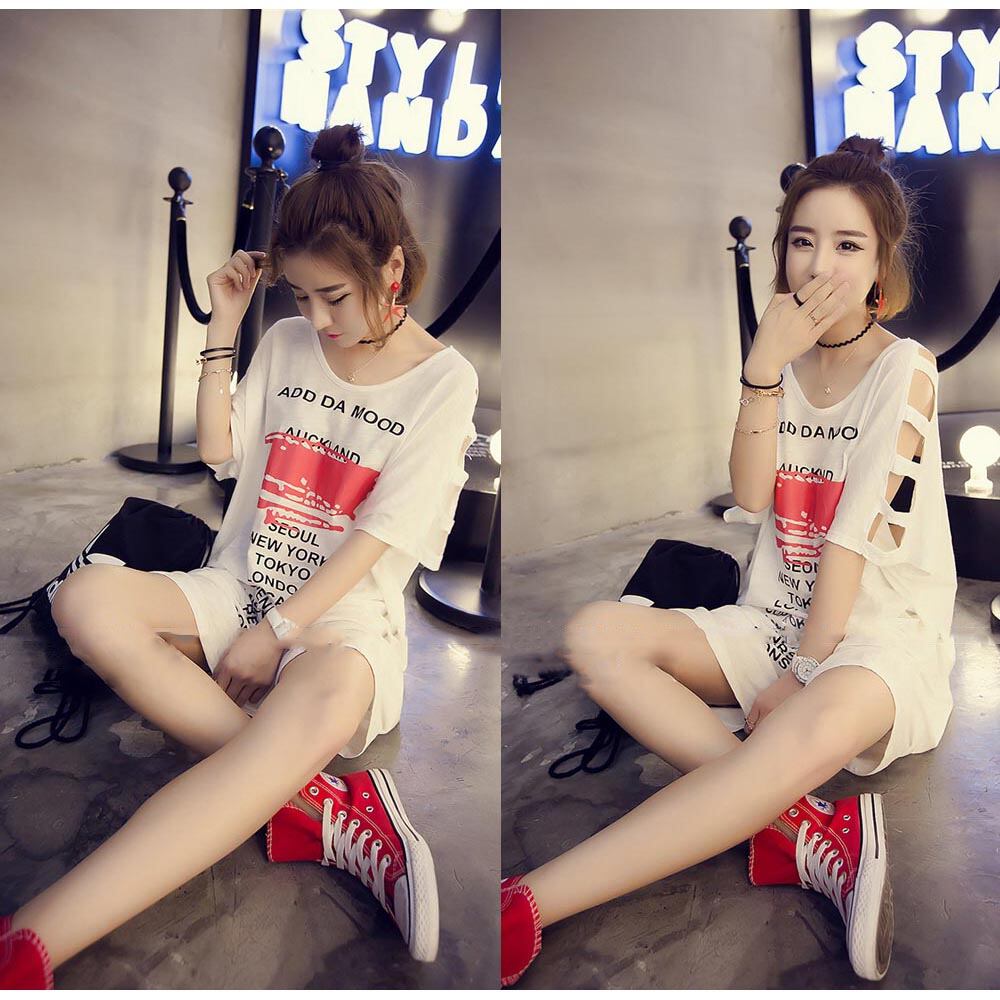 透かしカッティング仕様の5分袖で涼しげでちょっぴりセクシーなロングtシャツ