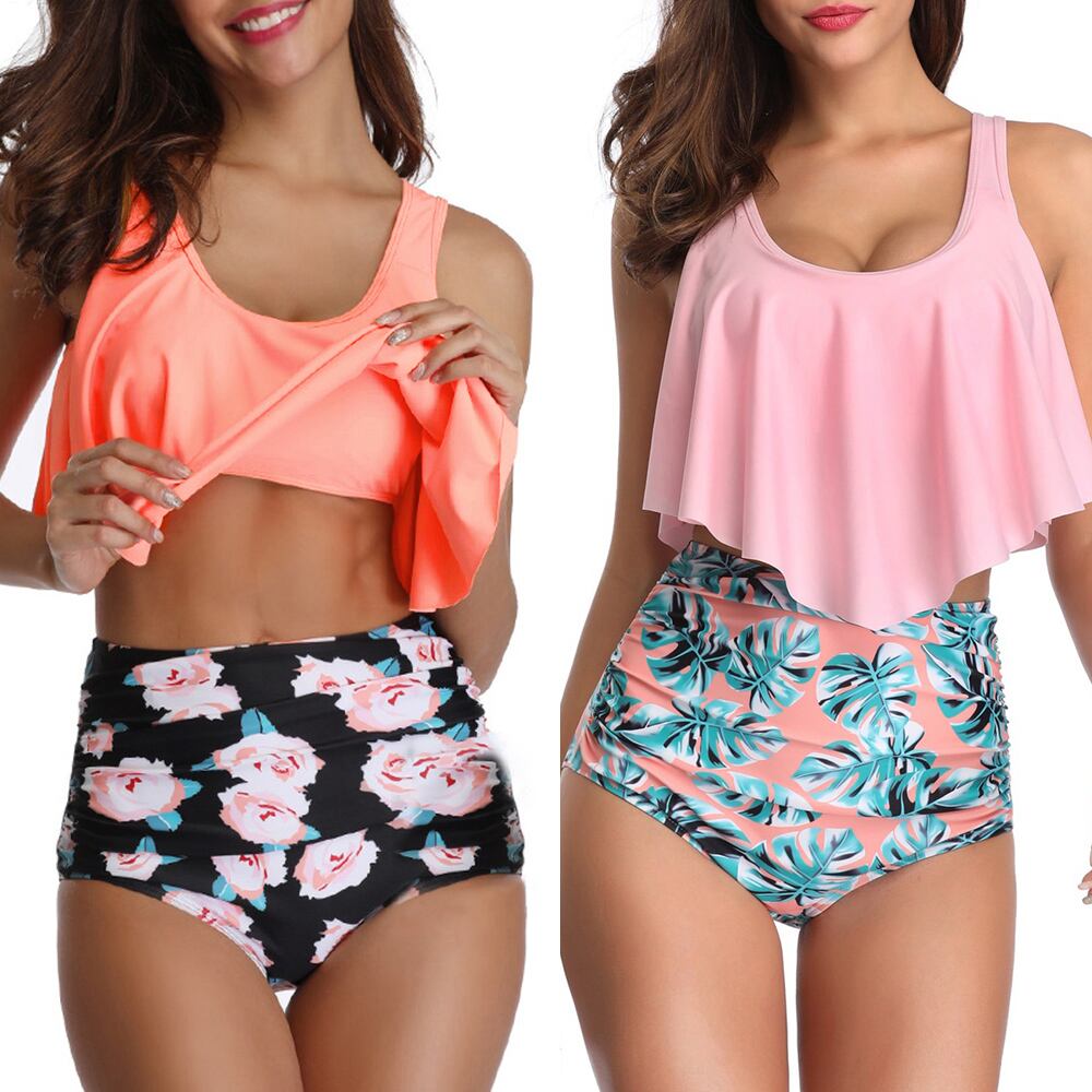 水着セットアップ セクシー フェミニン ノンワイヤー ハイウエスト水着 カラフル プール遊び タンキニ 大人かわいい水着