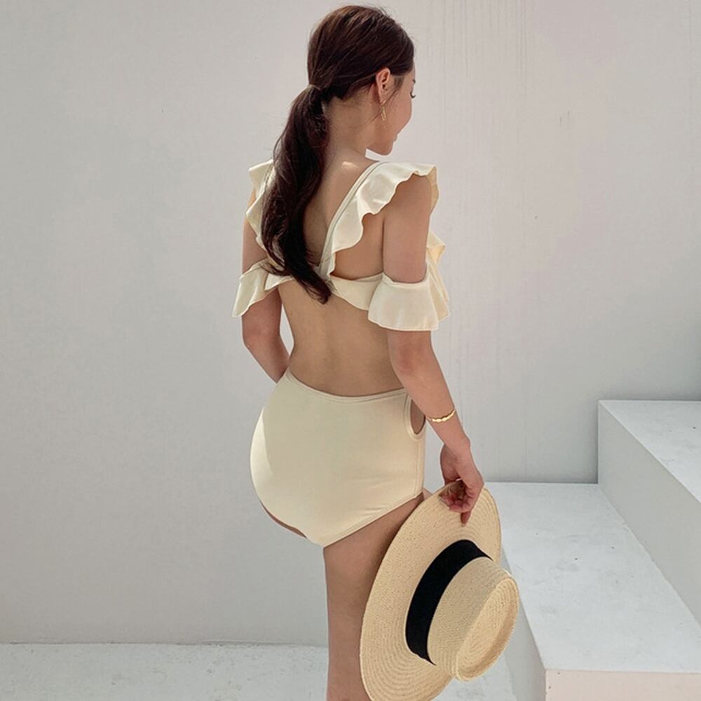 胸元と背中を大胆に披露、360度どこから見ても大人可愛いスタイルを印象付けてくれる全方位美人水着