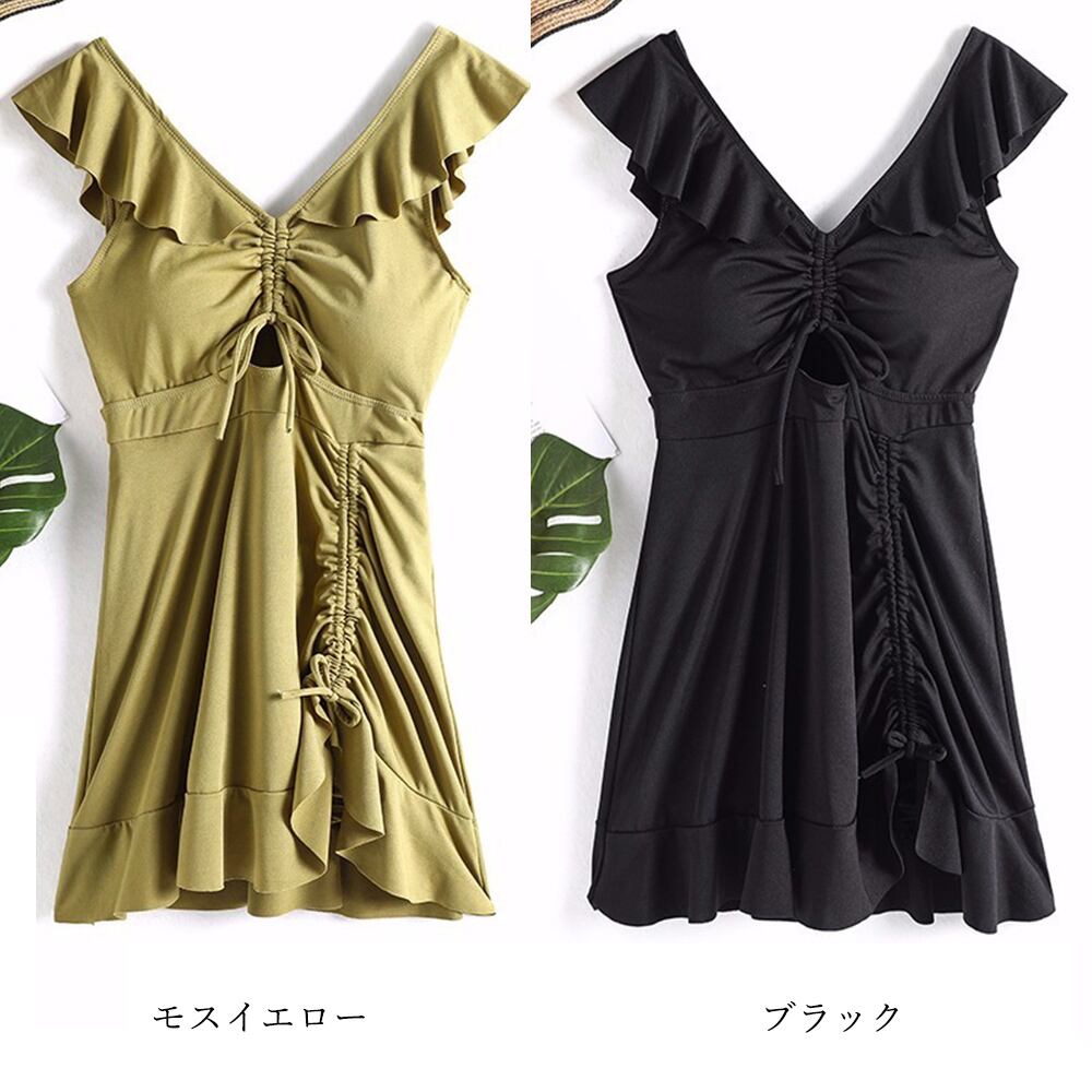 胸元ギャザー Vネック セクシー フリル お洒落 オールインワン レディース プール リゾート サマー 海 可愛い
