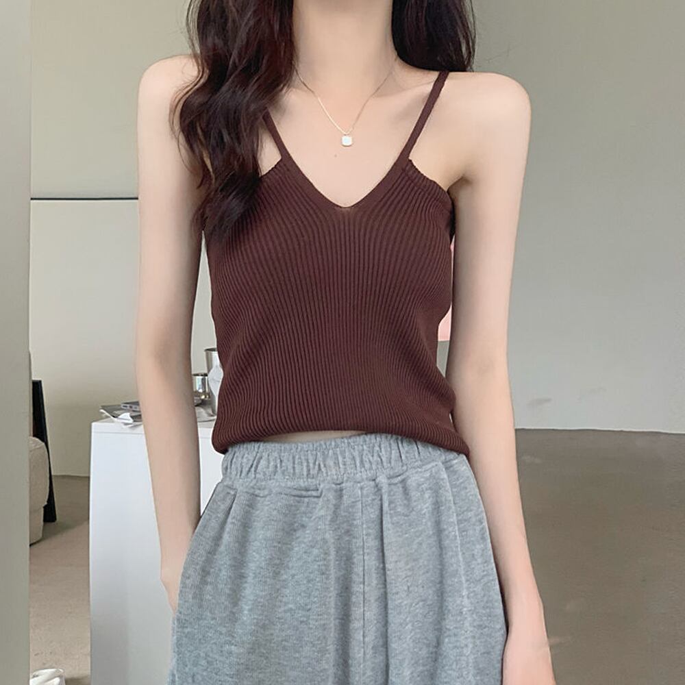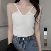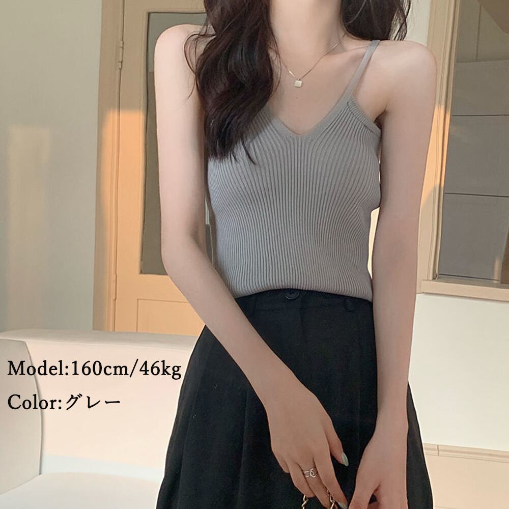 サマーニット きれいめ ニットキャミソール リブ編み 重ね着 インナーニット 伸縮性 着やせ 韓国風 肌見せ セクシー