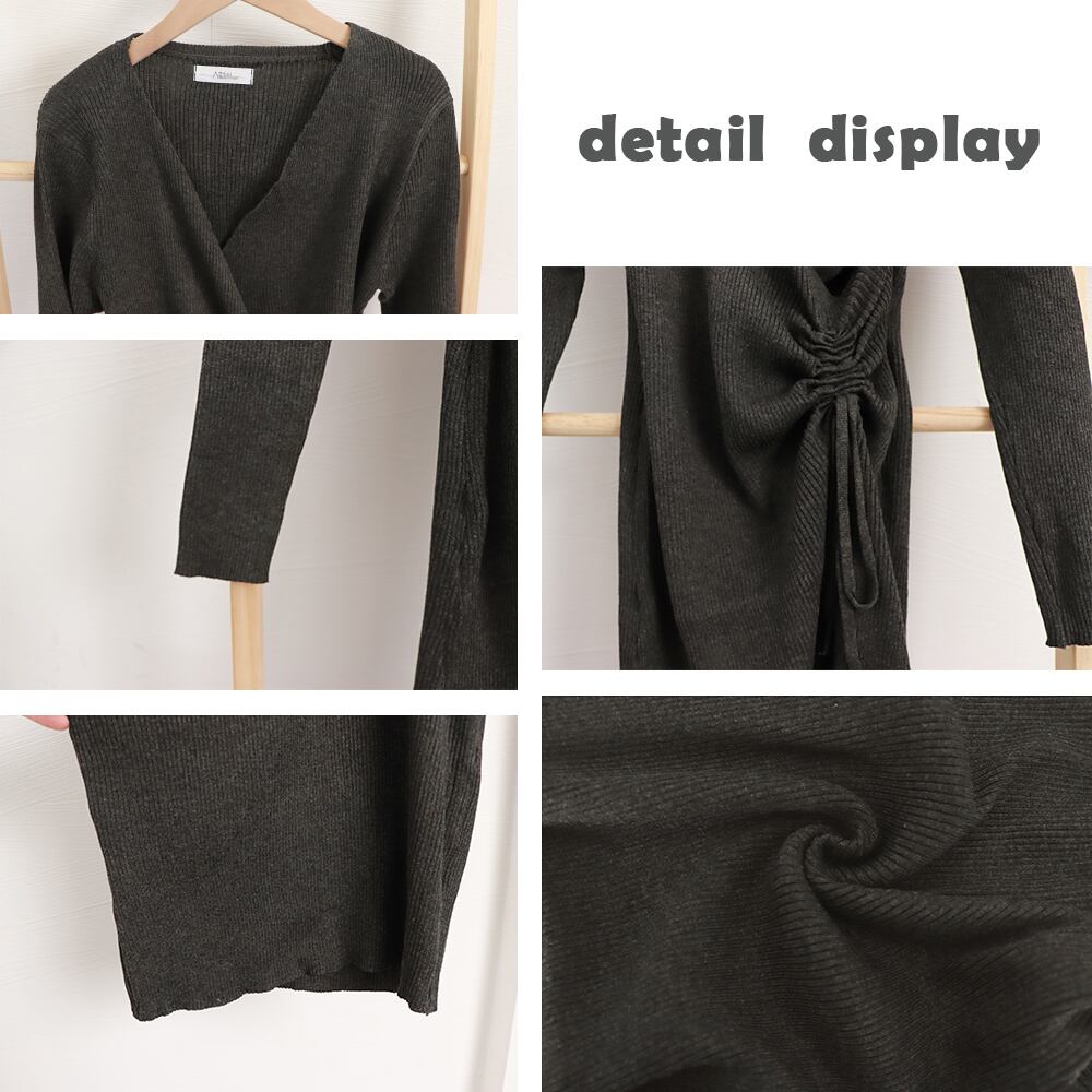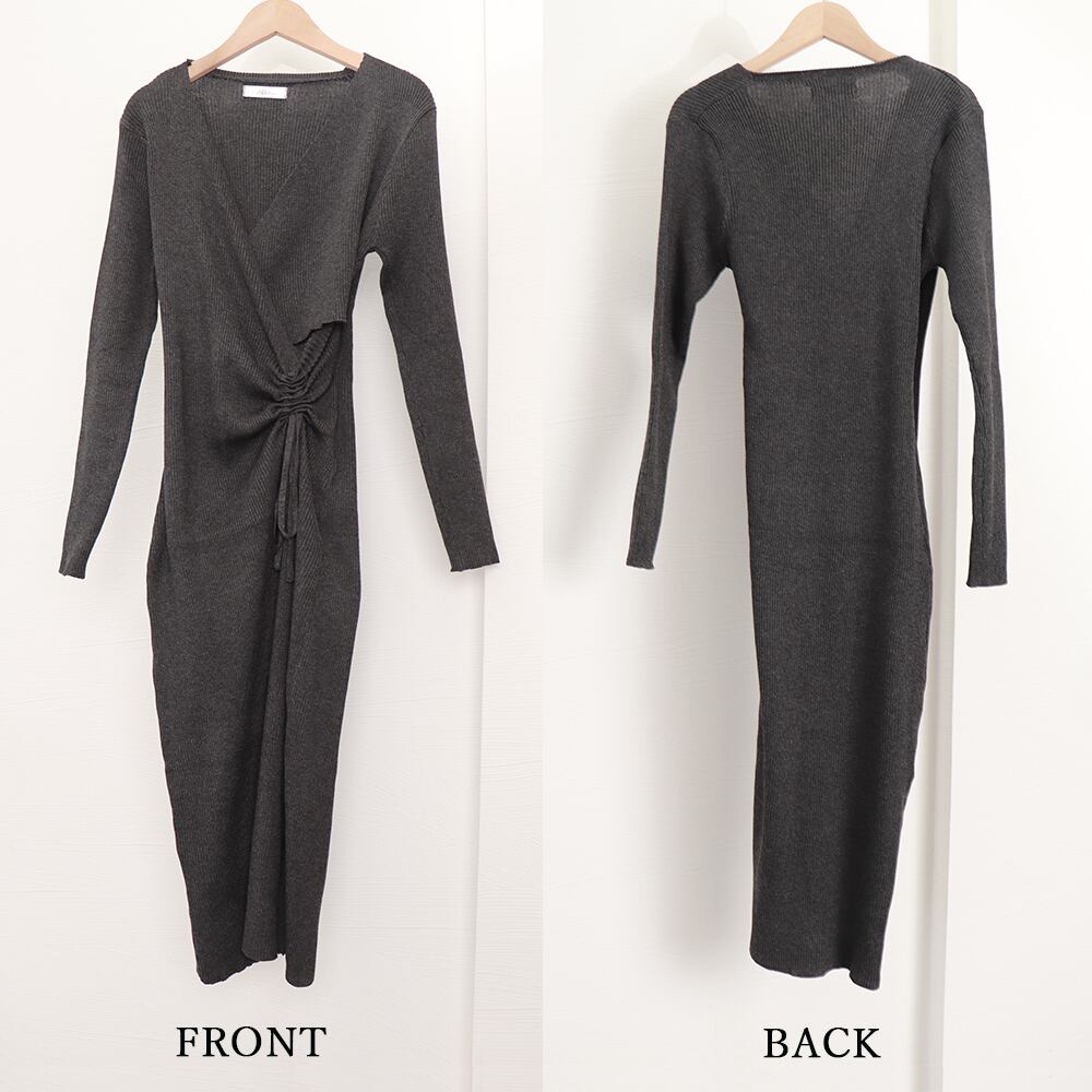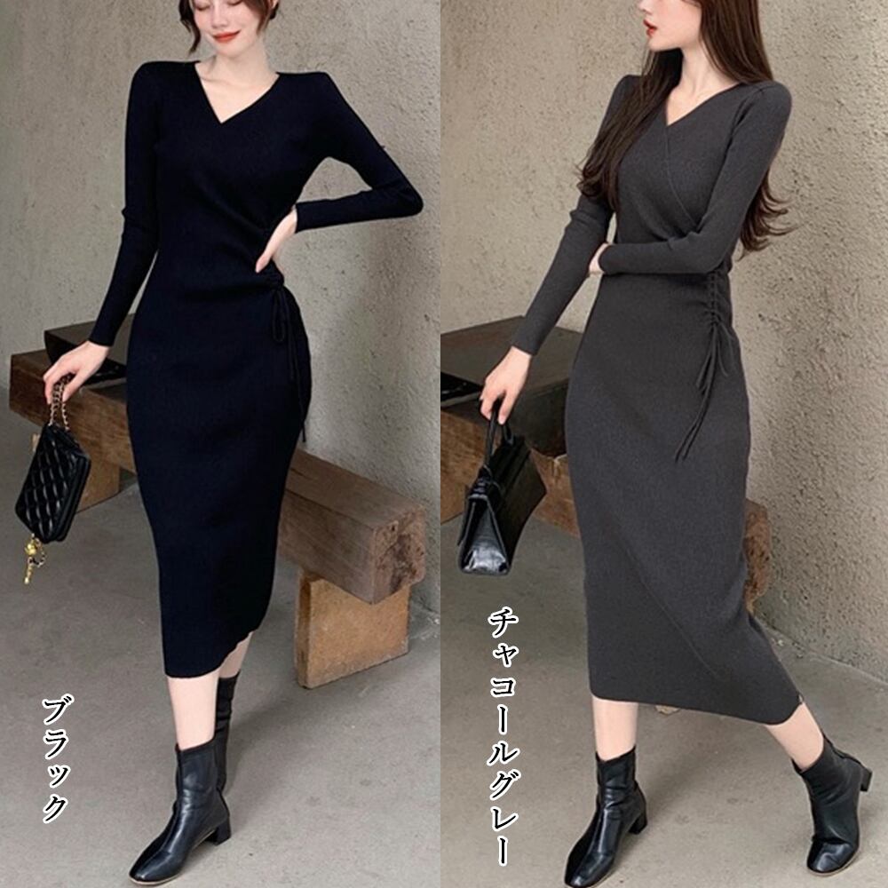 【日本倉庫からの発送】 カシュクール リブニットワンピース 秋冬 #[2ZHM-008_32100]【送料込み】【260115】