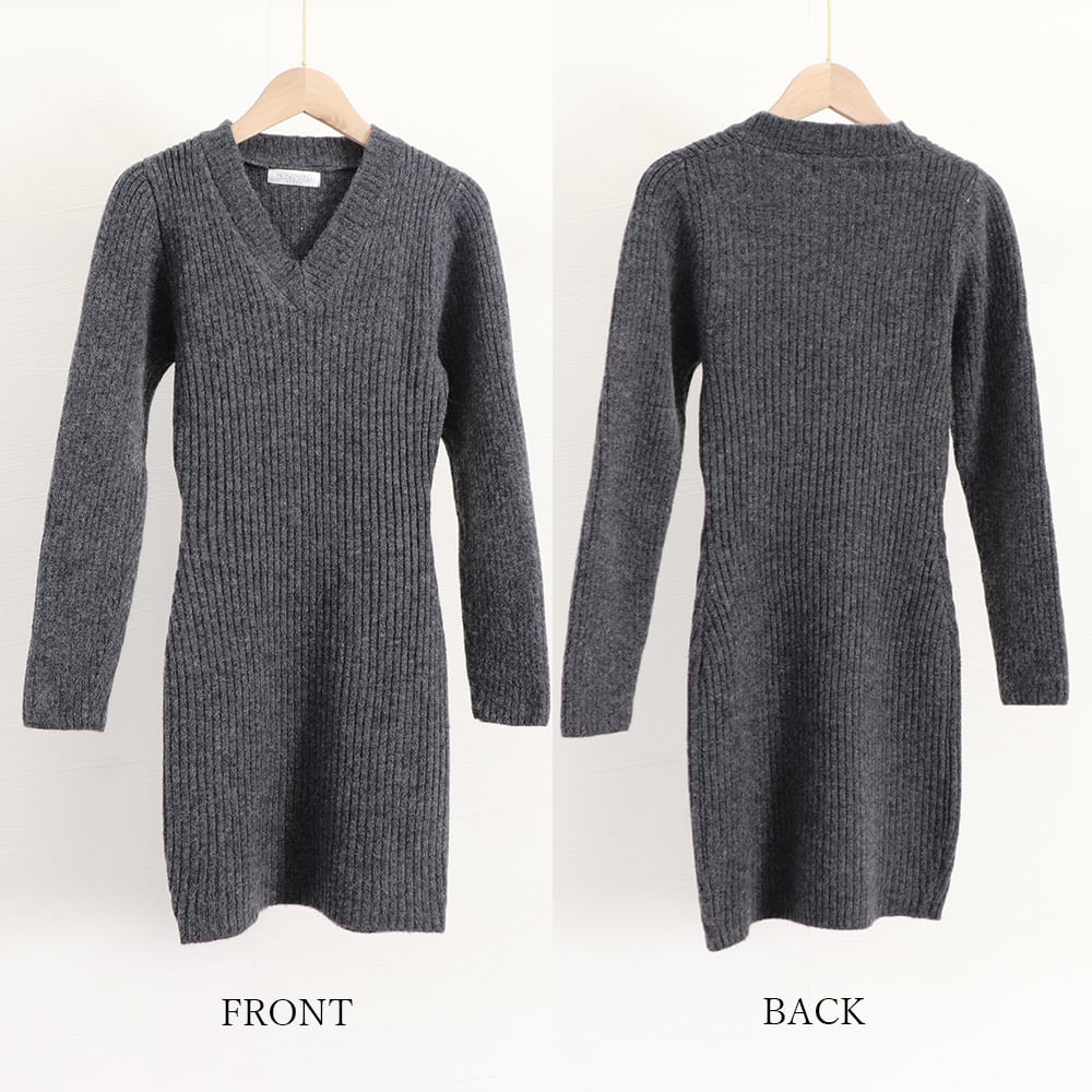 レディース Vネック タイトワンピース 大人カジュアル セクシーワンピース きれいめ重ね着ワンピ 着やせ セータードレス