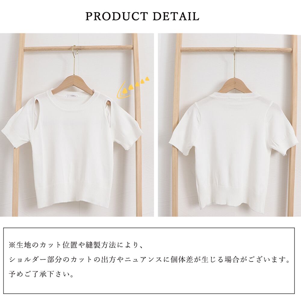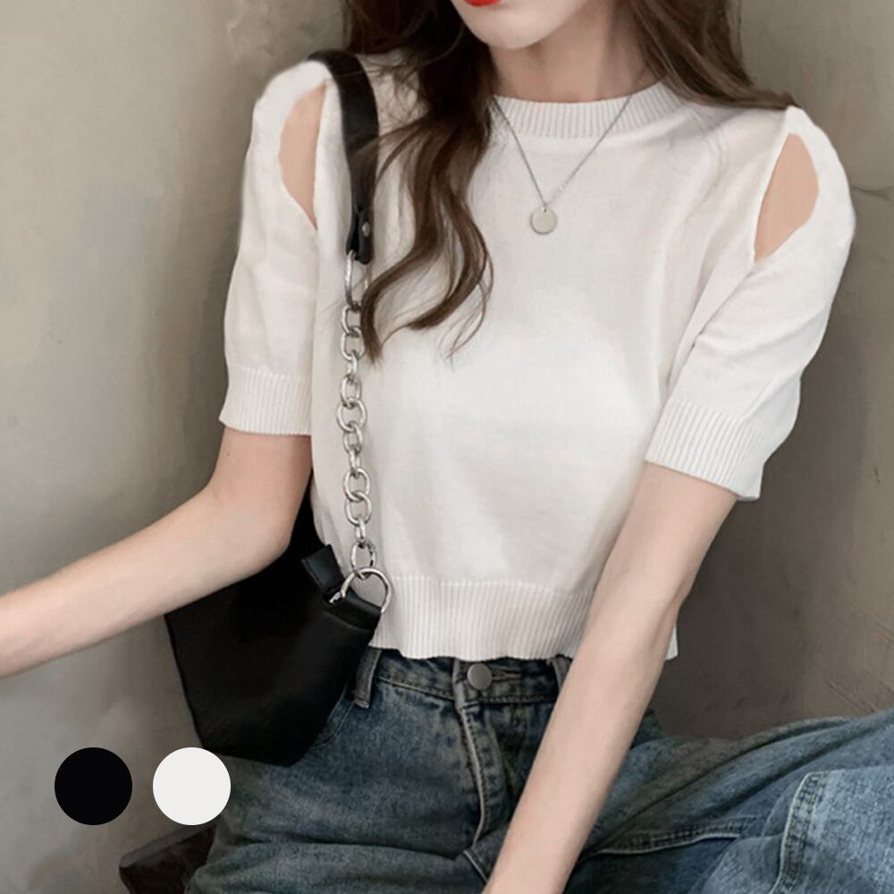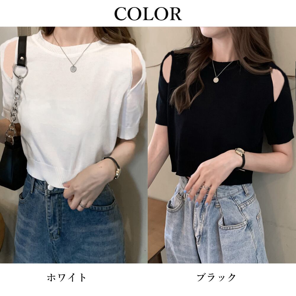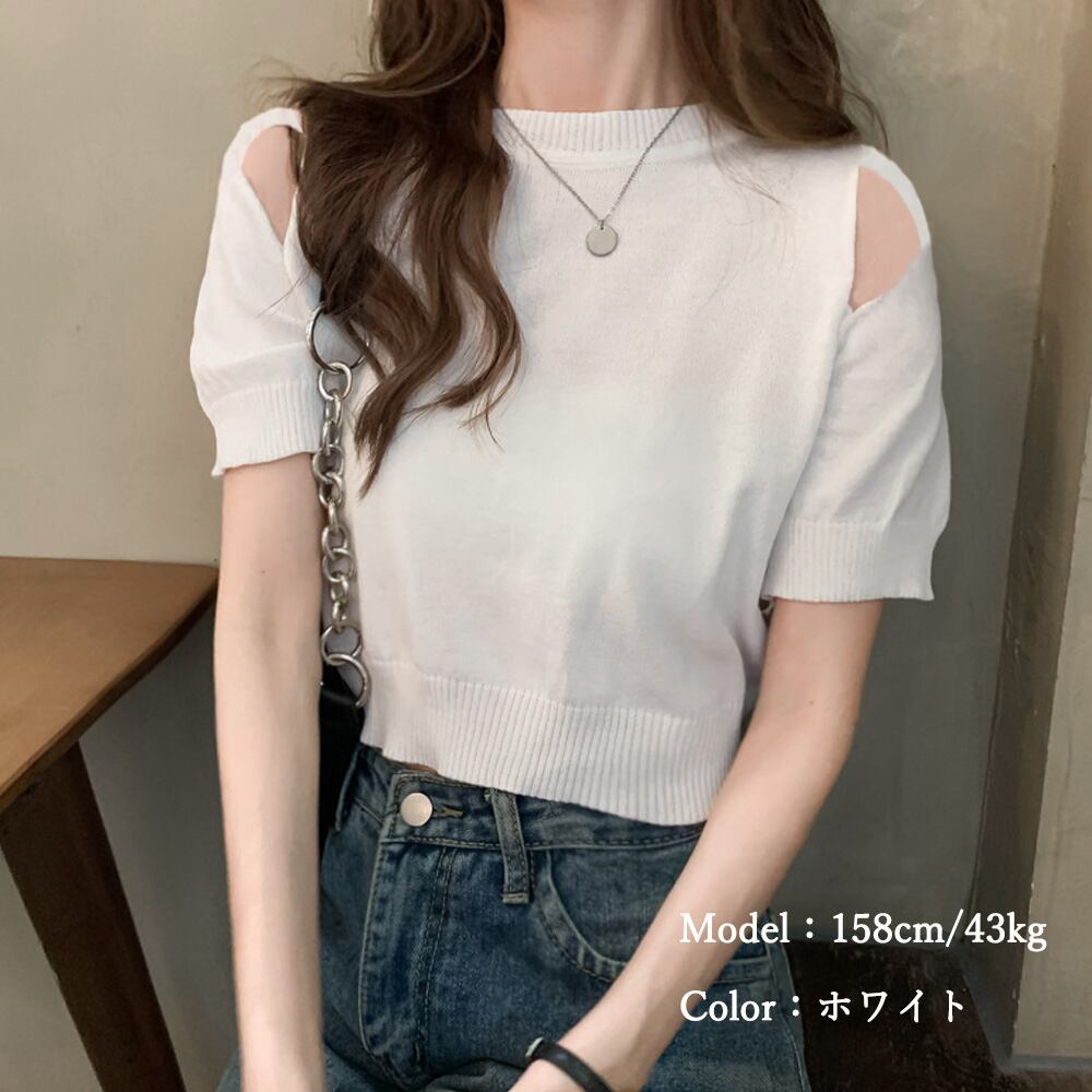 短め丈でスタイルアップ効果が抜群な肩出しショート丈ニットトップス