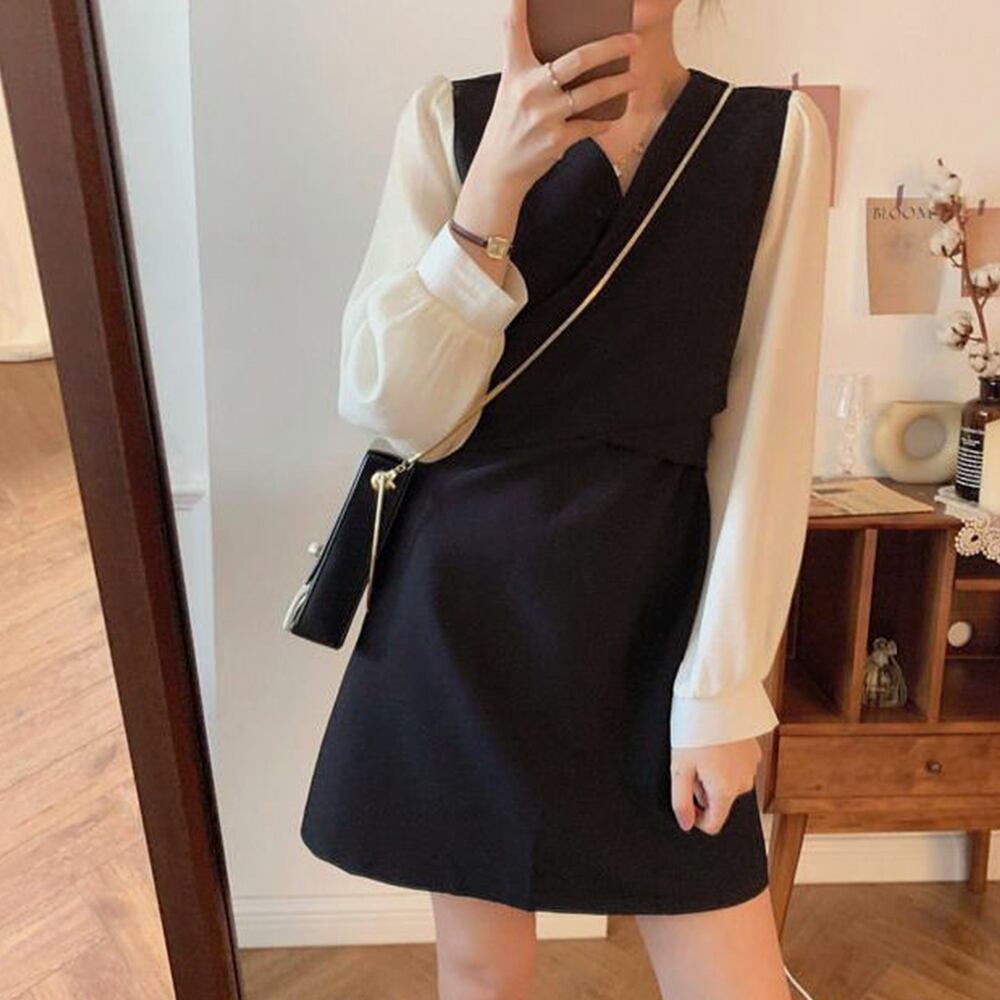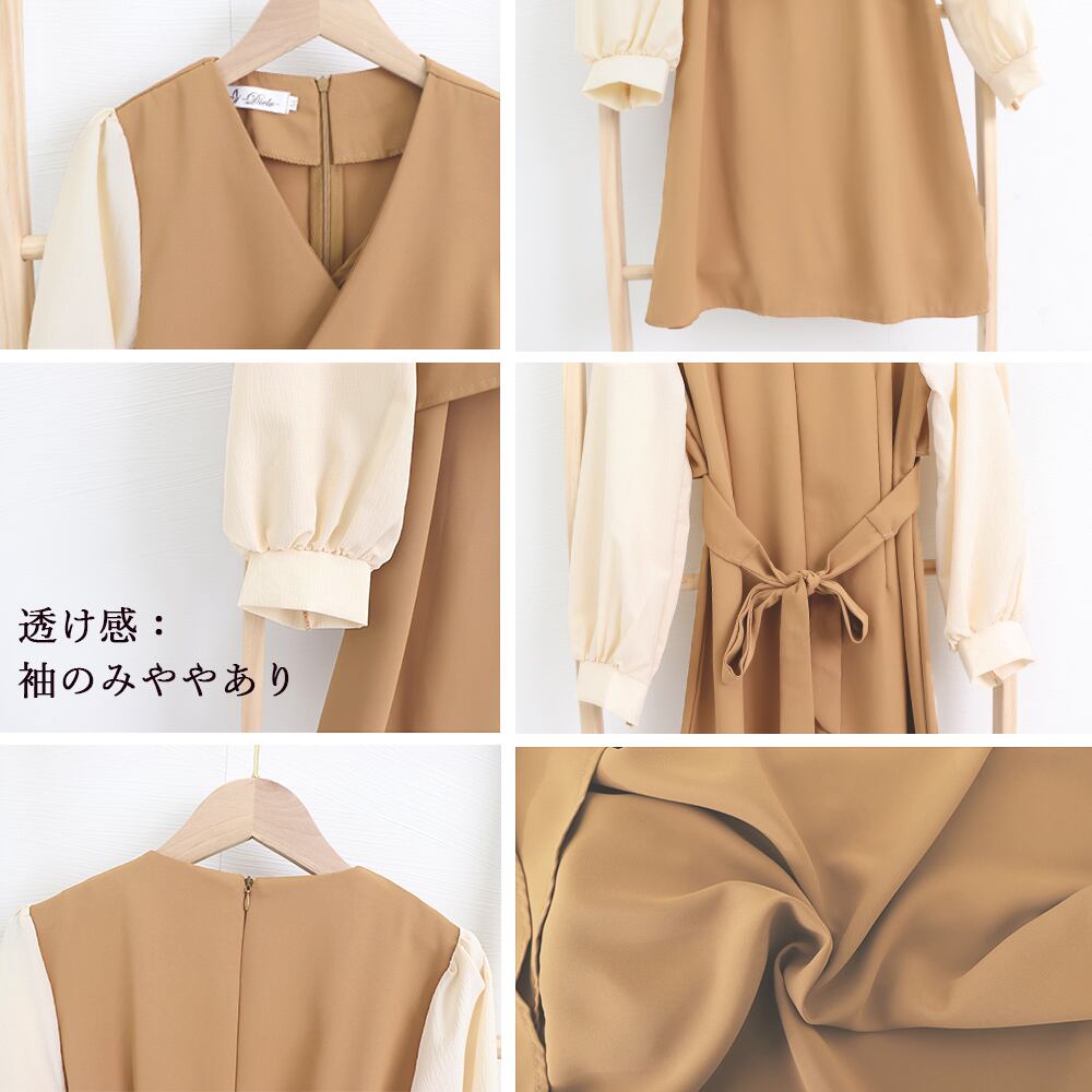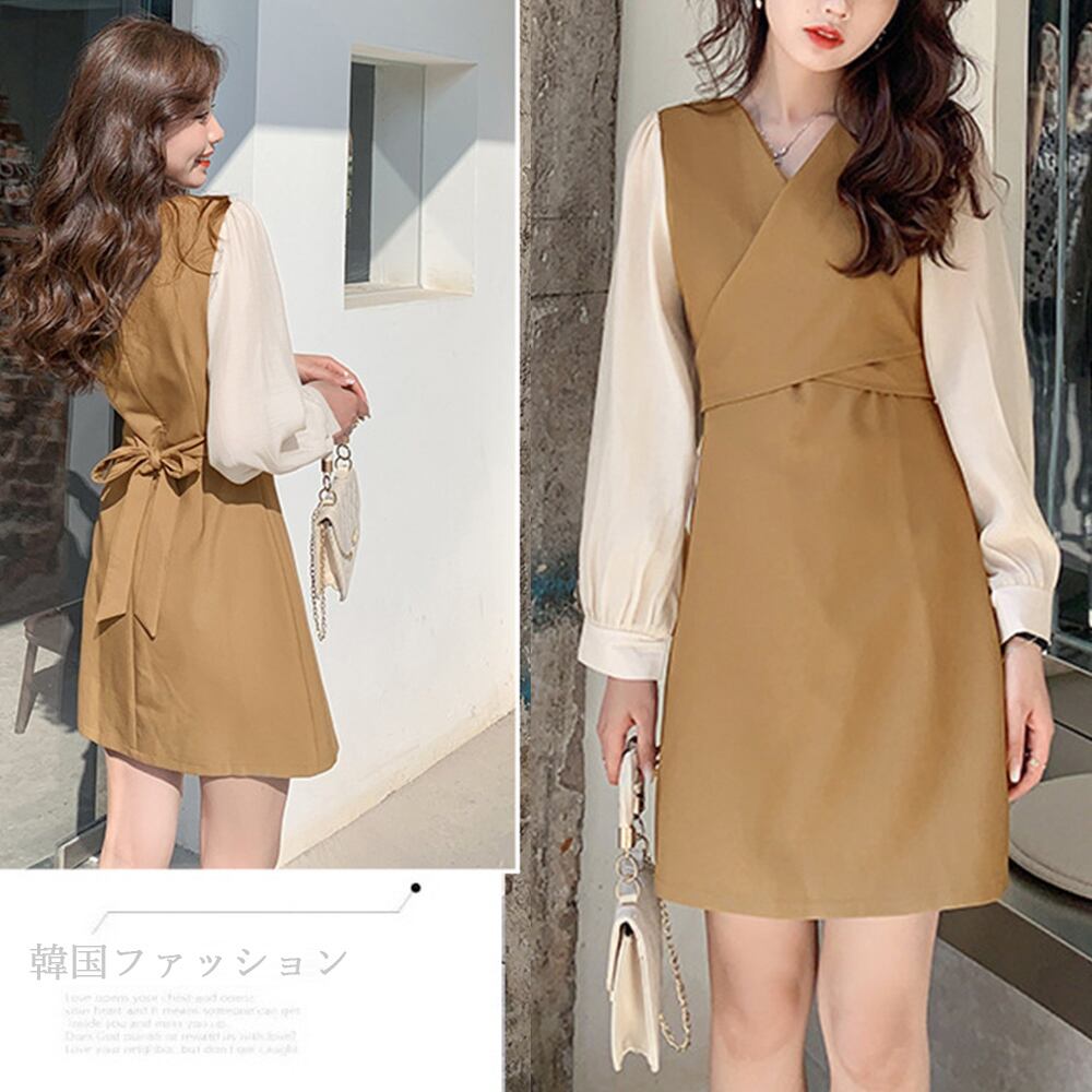 春 重ね着風ワンピ オフィスカジュアル ワンピース 韓国