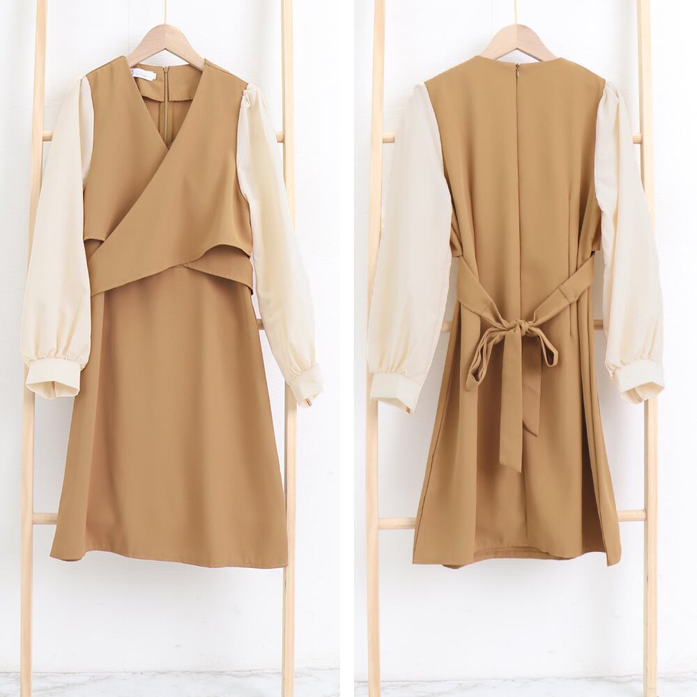 胸元をクロスにさせてカシュクール風切り替えワンピース