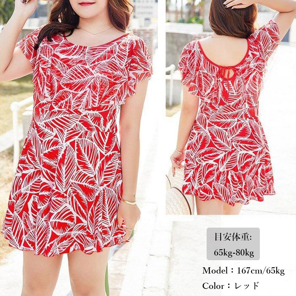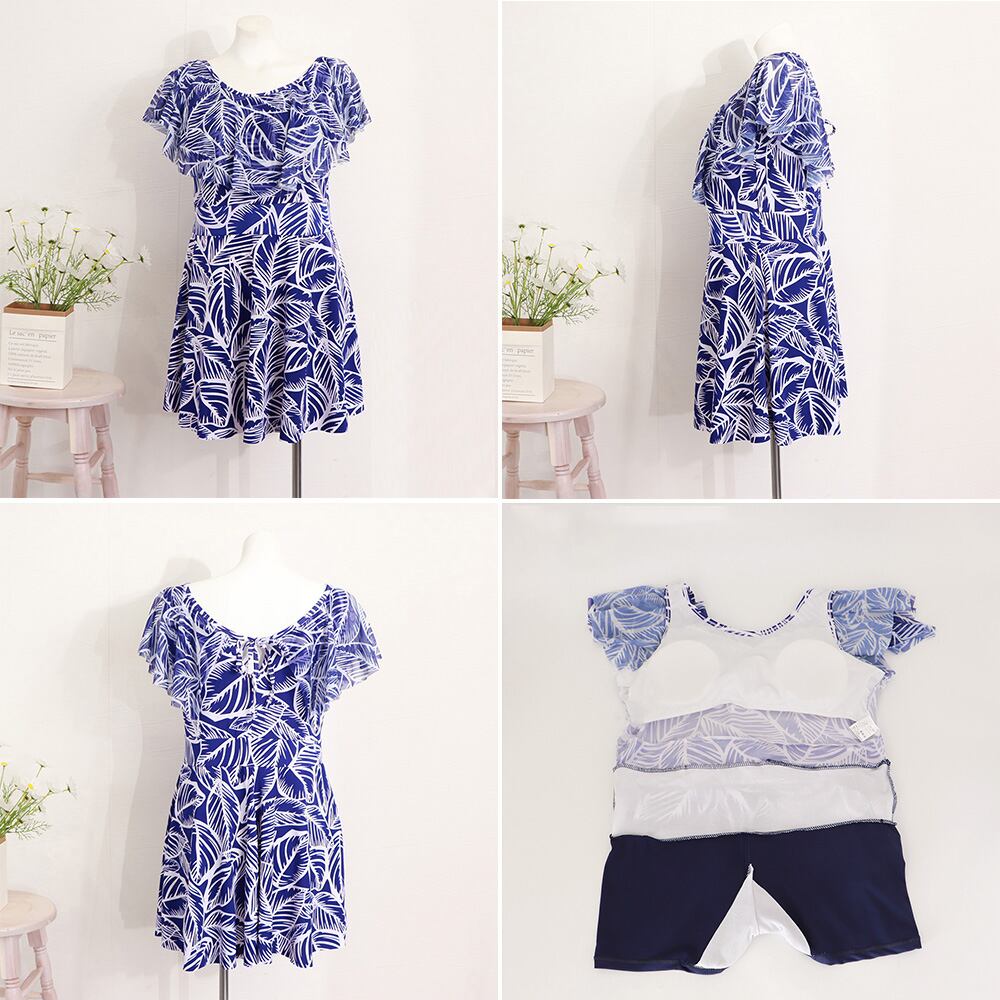 【日本倉庫からの発送】 ぽっちゃり 水着オールインワン水着 葉柄 #[2GONGSH-008_17700]【送料込み】【250727】