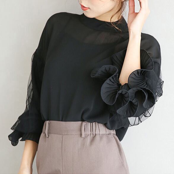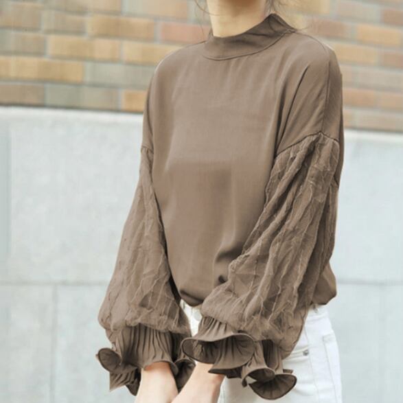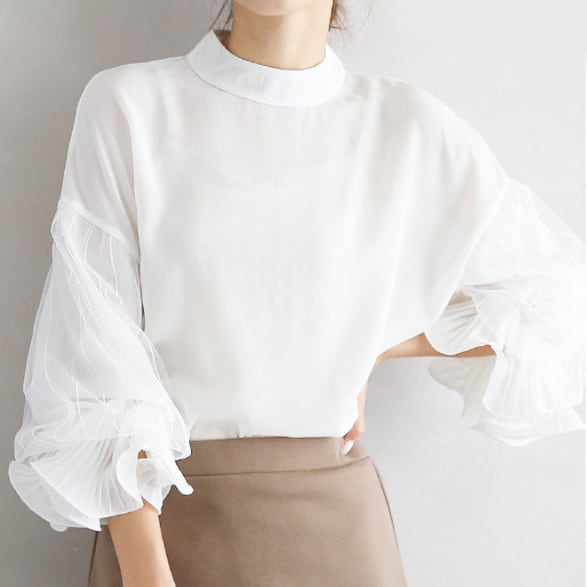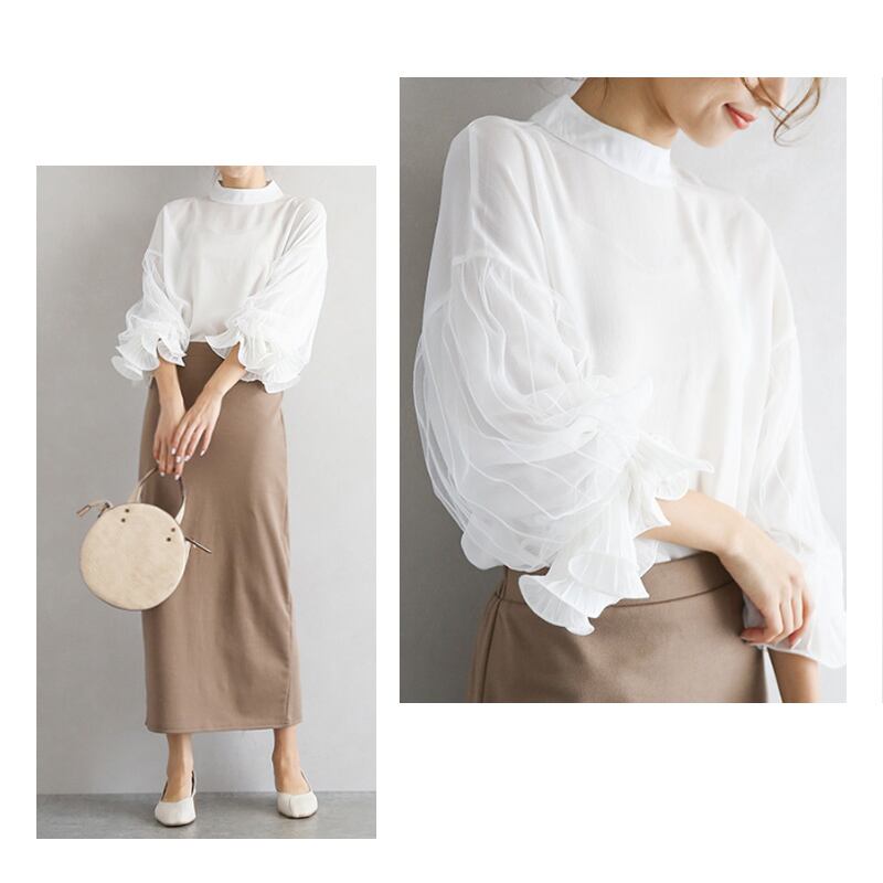 【海外からの取り寄せ】2024新作 レディース カットソー シフォン トップス プルオーバー 透け感 シースルー レース ボリューム袖 #[tops363_20800]【送料込み】【250915】