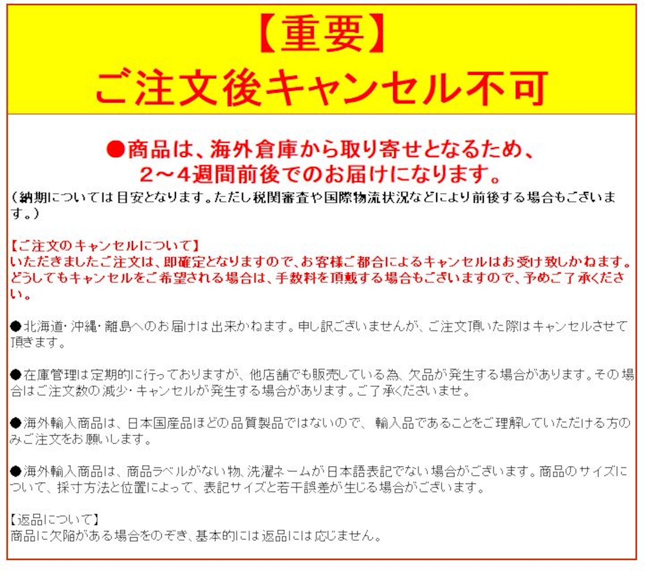 ※いただきましたご注文は、即確定となりますので、お客様ご都合によるキャンセルはお受け致しかねます。予めご了承くださいますようお願い申し上げます。