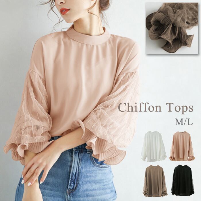 フリルの効いたボリューム袖がフェミニンポイント シフォントップス