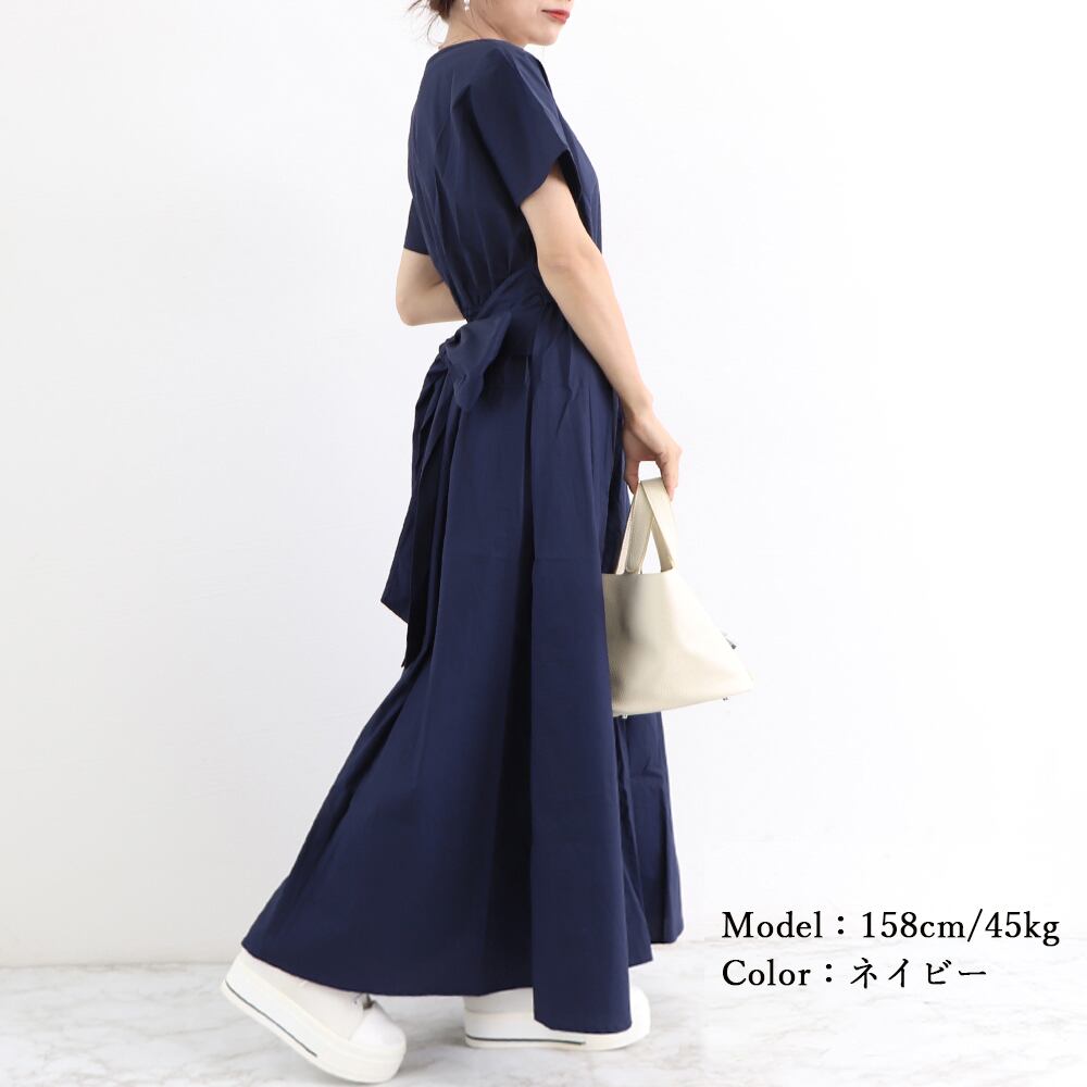 前後2wayリボンデザインが大人可愛いフレンチ袖マキシワンピース