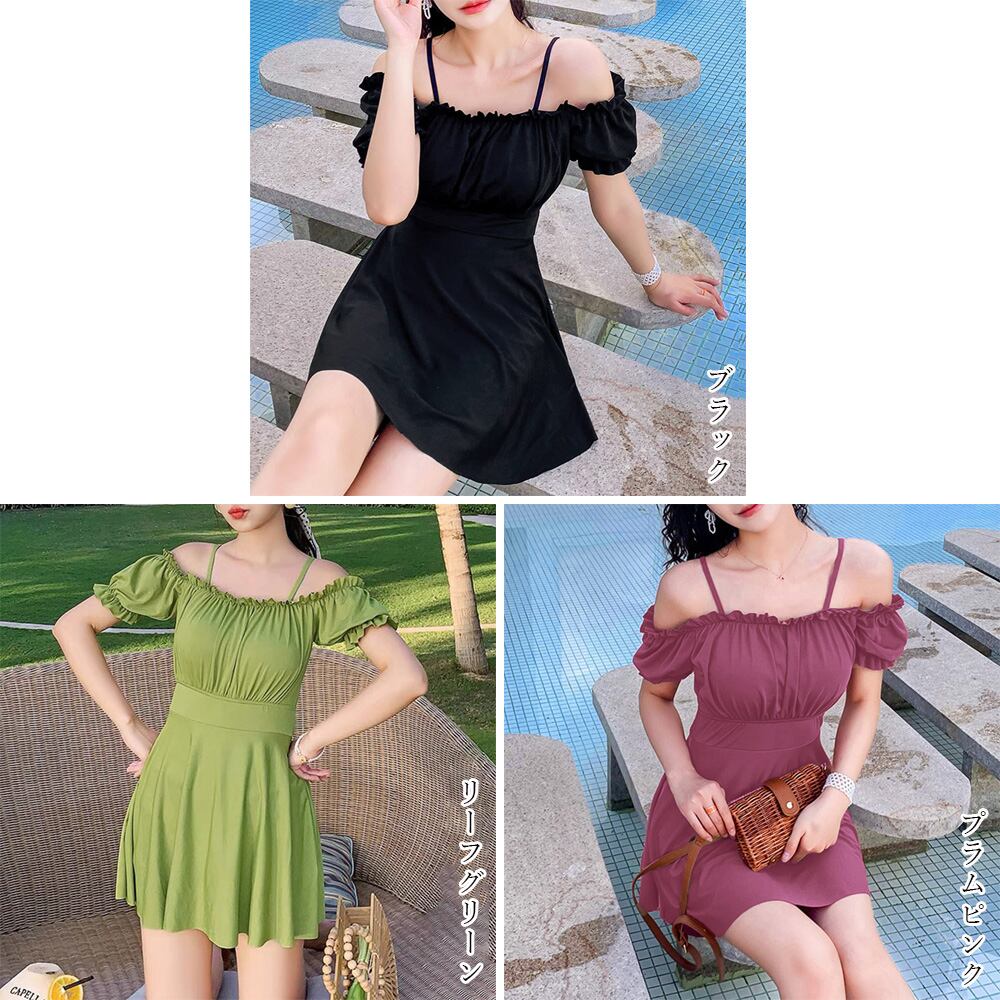 【日本倉庫からの発送】 オフショルダー ワンピース水着 韓国風 #[85YN-900450_16900]【送料込み】【250727】
