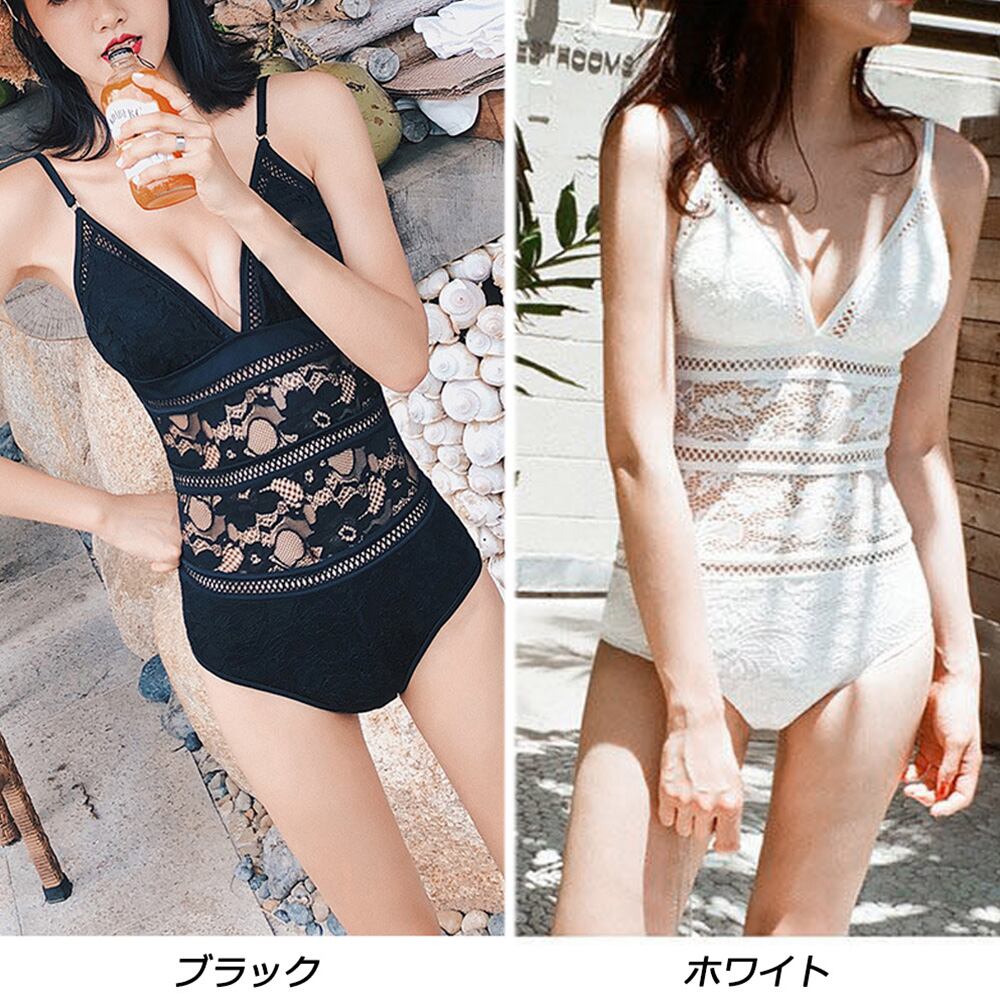 繊細な花柄レースを贅沢に使用、透かしDesignで女子力をアピールするモノキニ水着