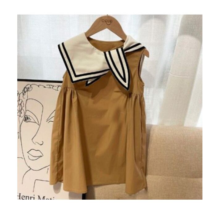 【海外からの取り寄せ】2024新作 韓国子供服 子供 キッズ 子供服 ワンピース 幼稚園 小学生 ブラウン セーラー服風 ノースリーブ #[kids717_19800]【送料込み】【250706】