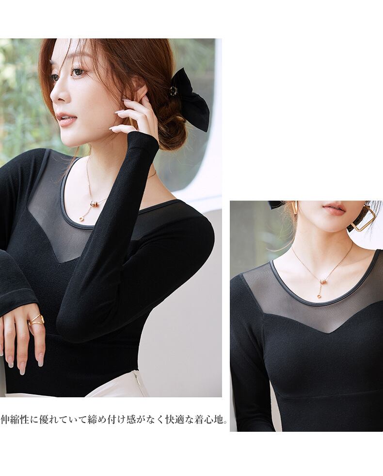 【海外からの取り寄せ】レディース インナー 下着 保温 ラウンドネック 長袖 シアー シースルー 伸縮 カットソー 無地 あったか #[inner118_14800]【送料込み】【250615】