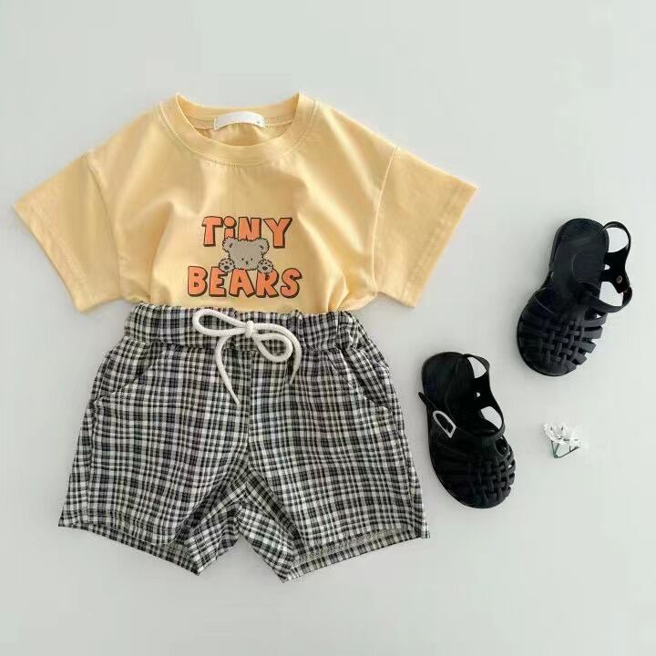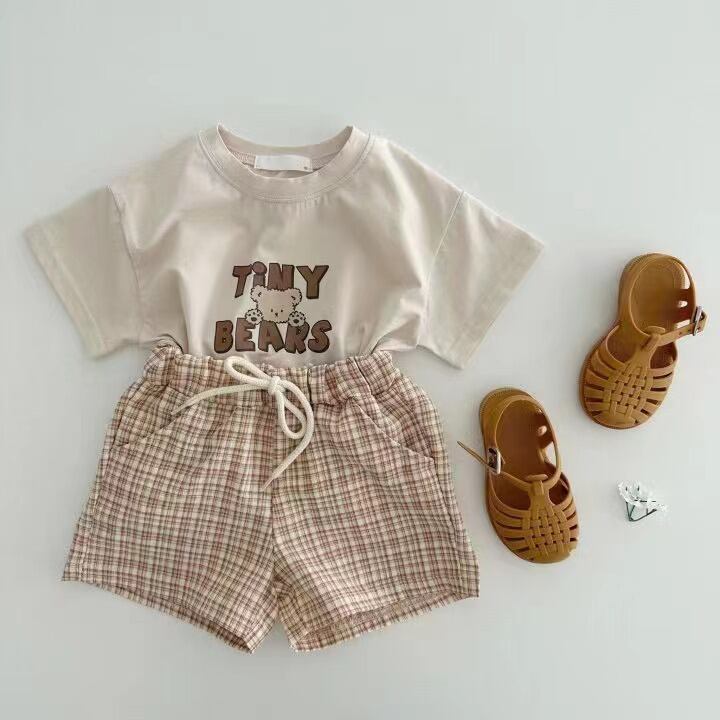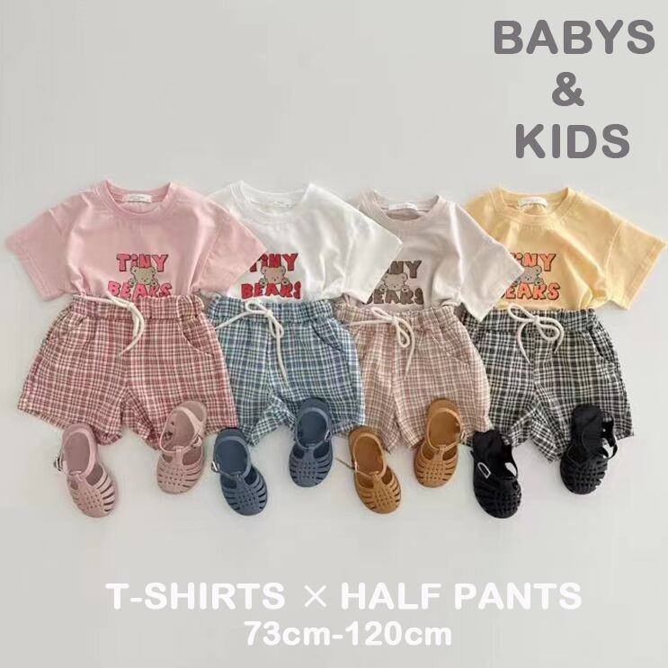 【海外からの取り寄せ】2024新作 上下セット 2点セット 赤ちゃん ベビー キッズ ハーフパンツ Tシャツ チェック柄 半袖 #[kids726_16800]【送料込み】【250508】