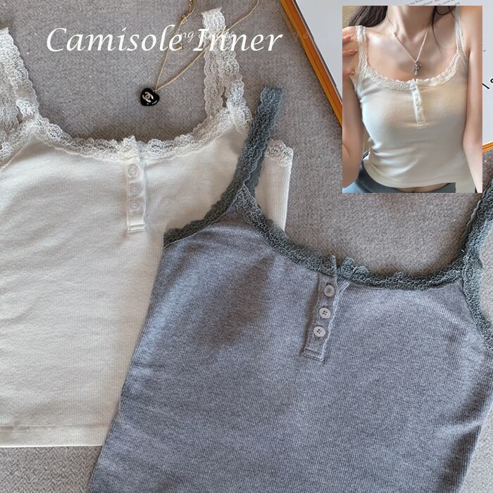 【海外からの取り寄せ】2024新作 インナーキャミ アンダーウェア インナー 下着 グレー ホワイト レース レース シンプル 無地 #[inner194_7800]【送料込み】【250615】