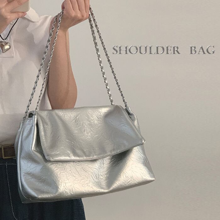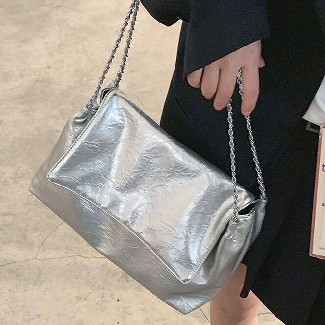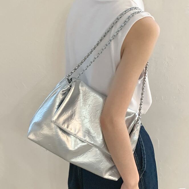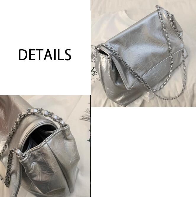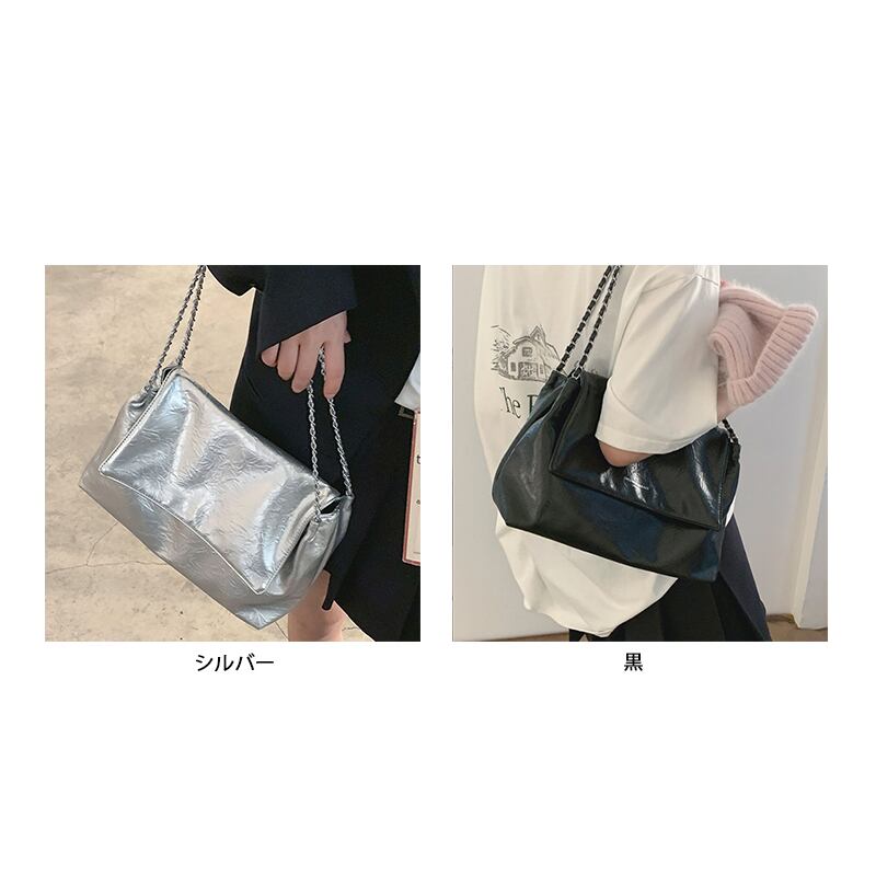 【海外からの取り寄せ】2024新作 レディース トートバッグ おしゃれ シルバー 黒 光沢感 斜め掛け 肩掛け チェーン 大容量 #[bag1378_14900]【送料込み】【250515】