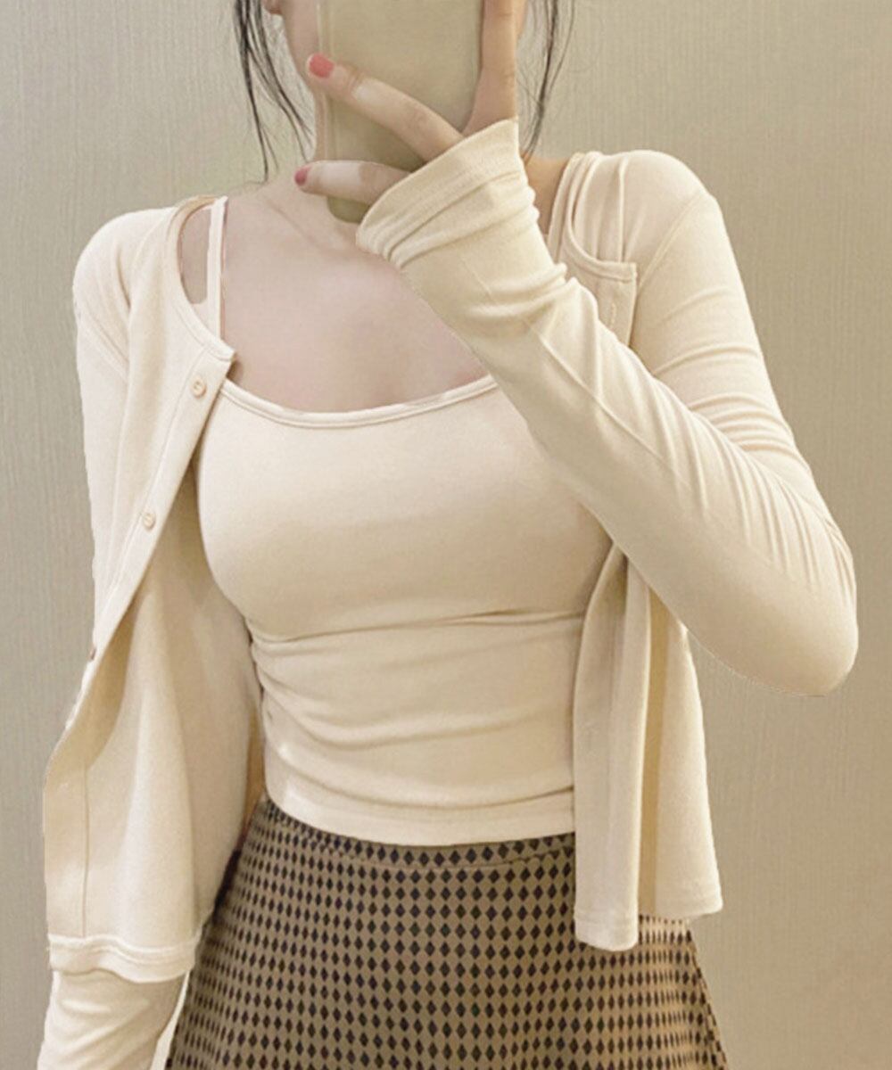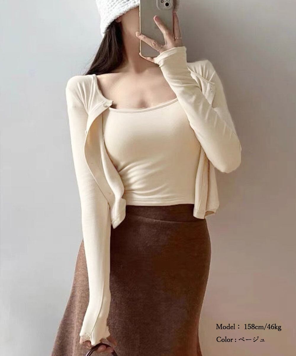 【日本倉庫からの発送】 カーディガンキャミソール2点セット #[98SABIAO-001_19600]【送料込み】【250529】