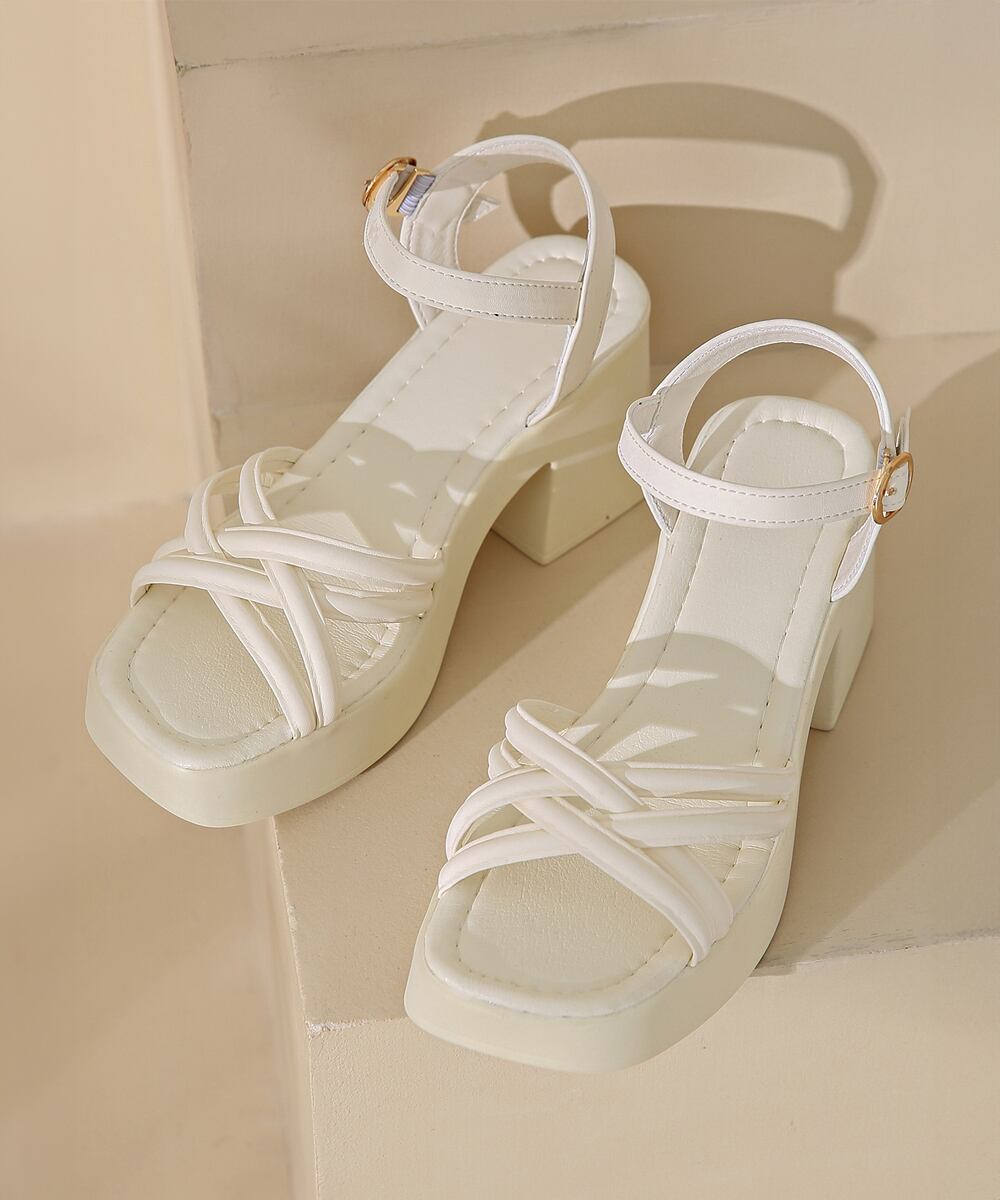 【日本倉庫からの発送】 サンダル 厚底太ヒール クロスストラップ #[99GYXC-100_28900]【送料込み】【250727】