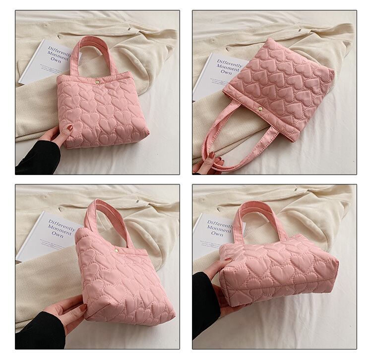 ハートのキルティングがキュートな軽量ハンドバッグ