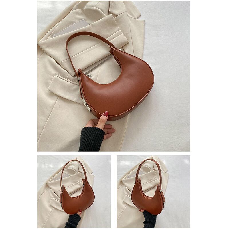 トナの女性が身に着けるエレガンスな三日月型ショルダーバッグ