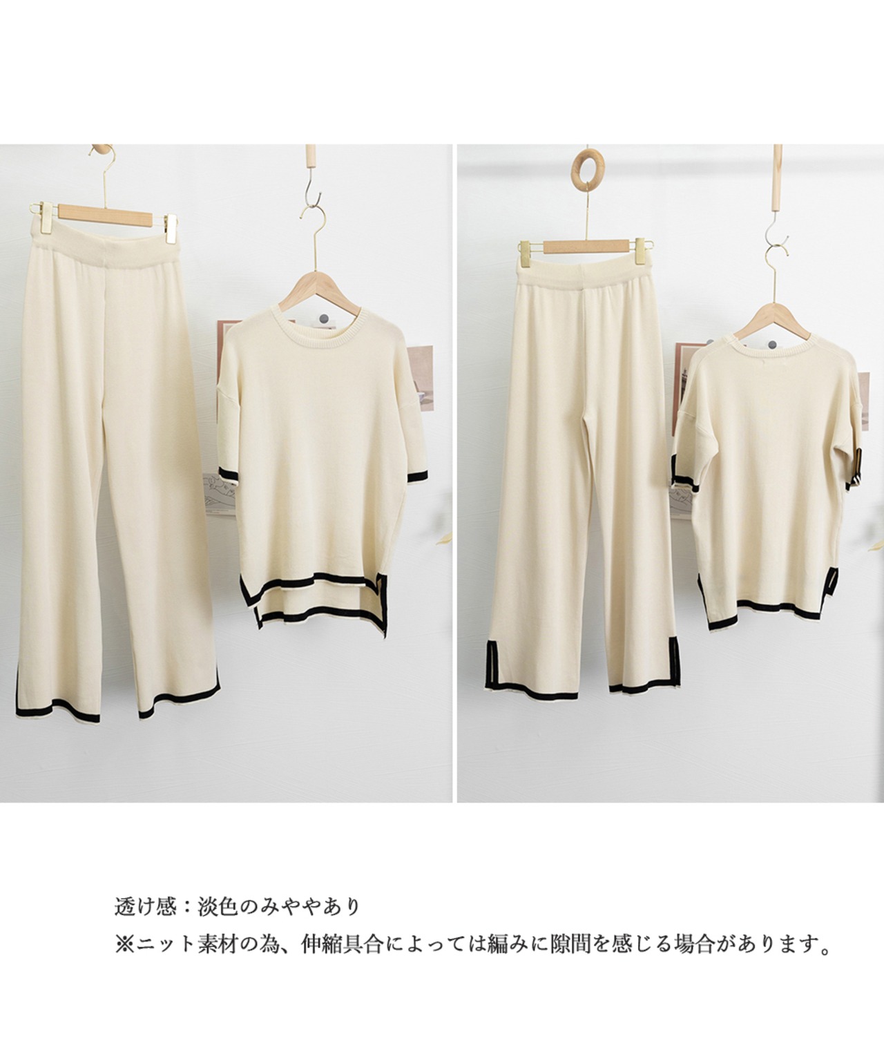 【日本倉庫からの発送】 セットアップ 配色スリットニットとパンツ #[90JINLONG-004_32700]【送料込み】【250625】