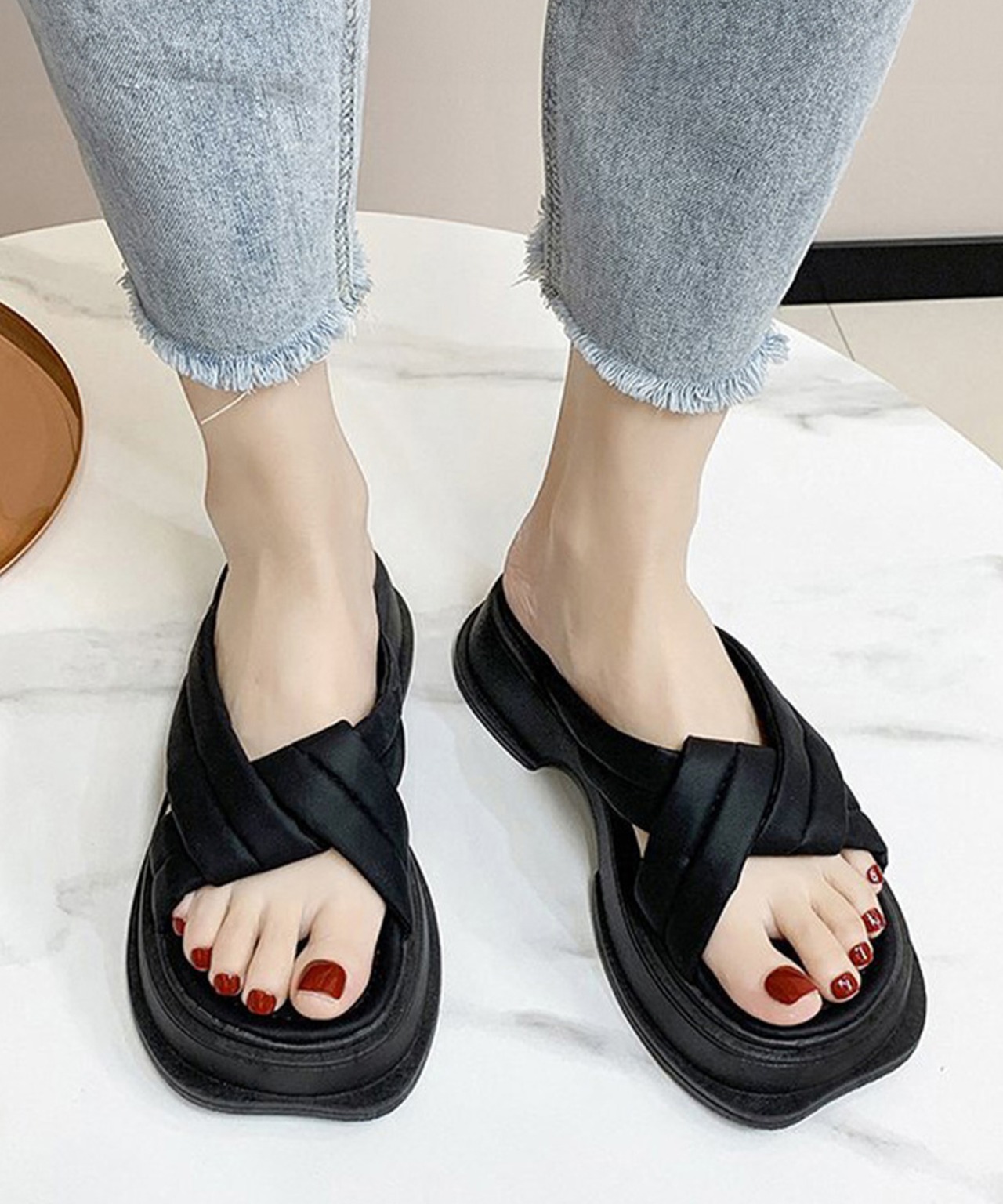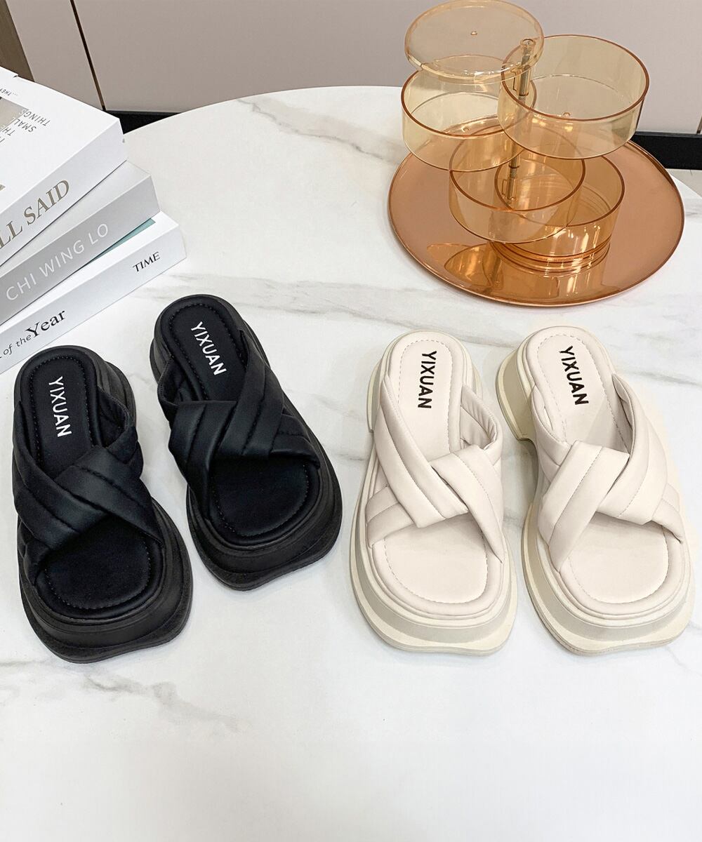 アイボリーとブラック、ベーシックなカラー展開の厚底ソールスリッパサンダル。