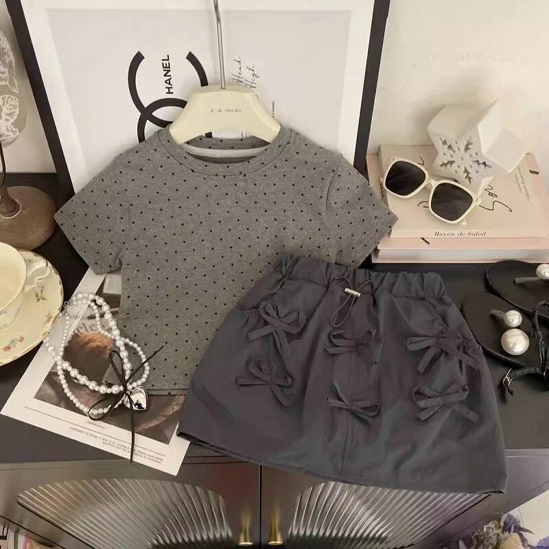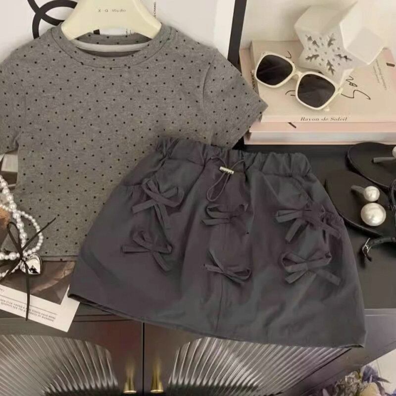 【海外からの取り寄せ】2024新作 韓国子供服 子供 キッズ 半袖 トップス tシャツ 水玉 黒 ミニスカート リボン 着回し 可愛い #[kids734_14800]【送料込み】【250706】