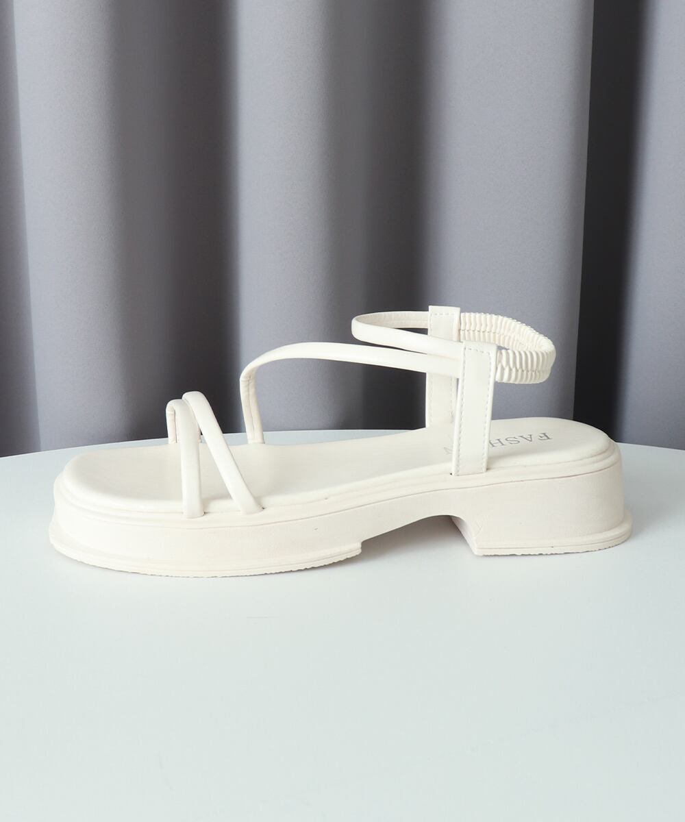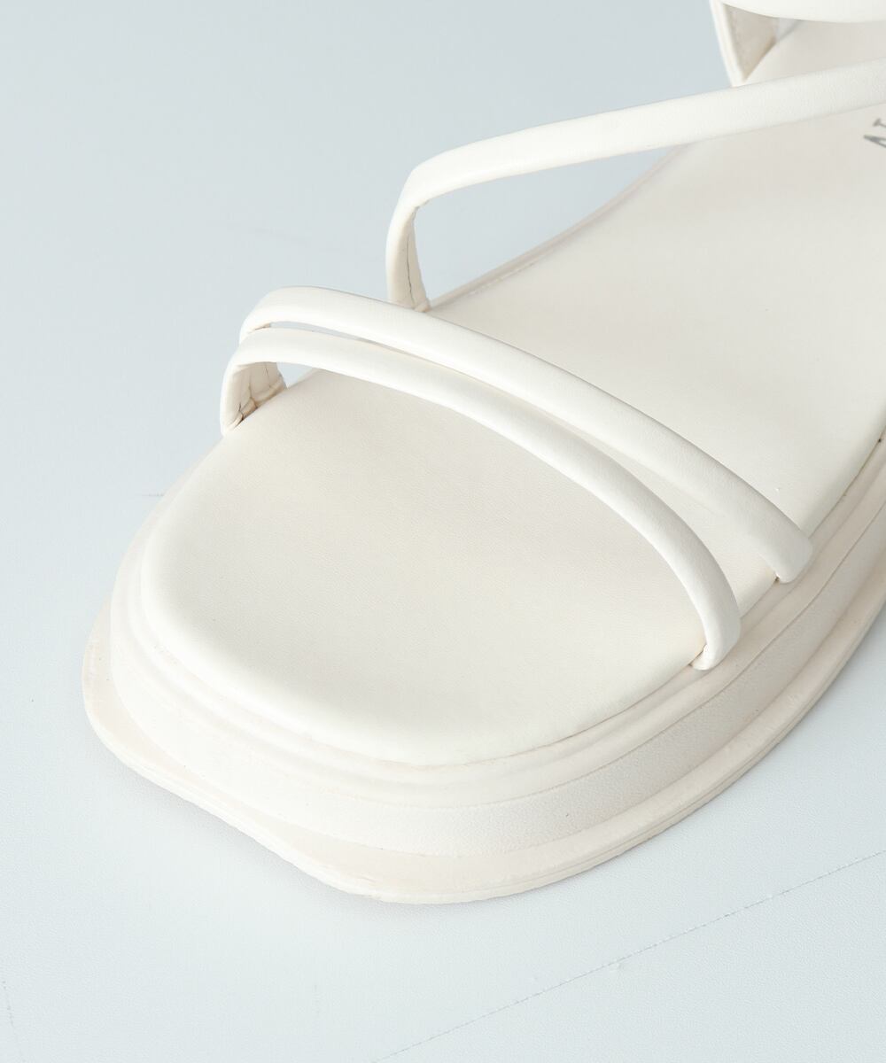 細めのストラップは女性らしい足元を演出する厚底サンダル。