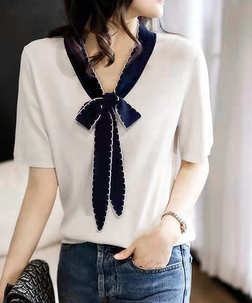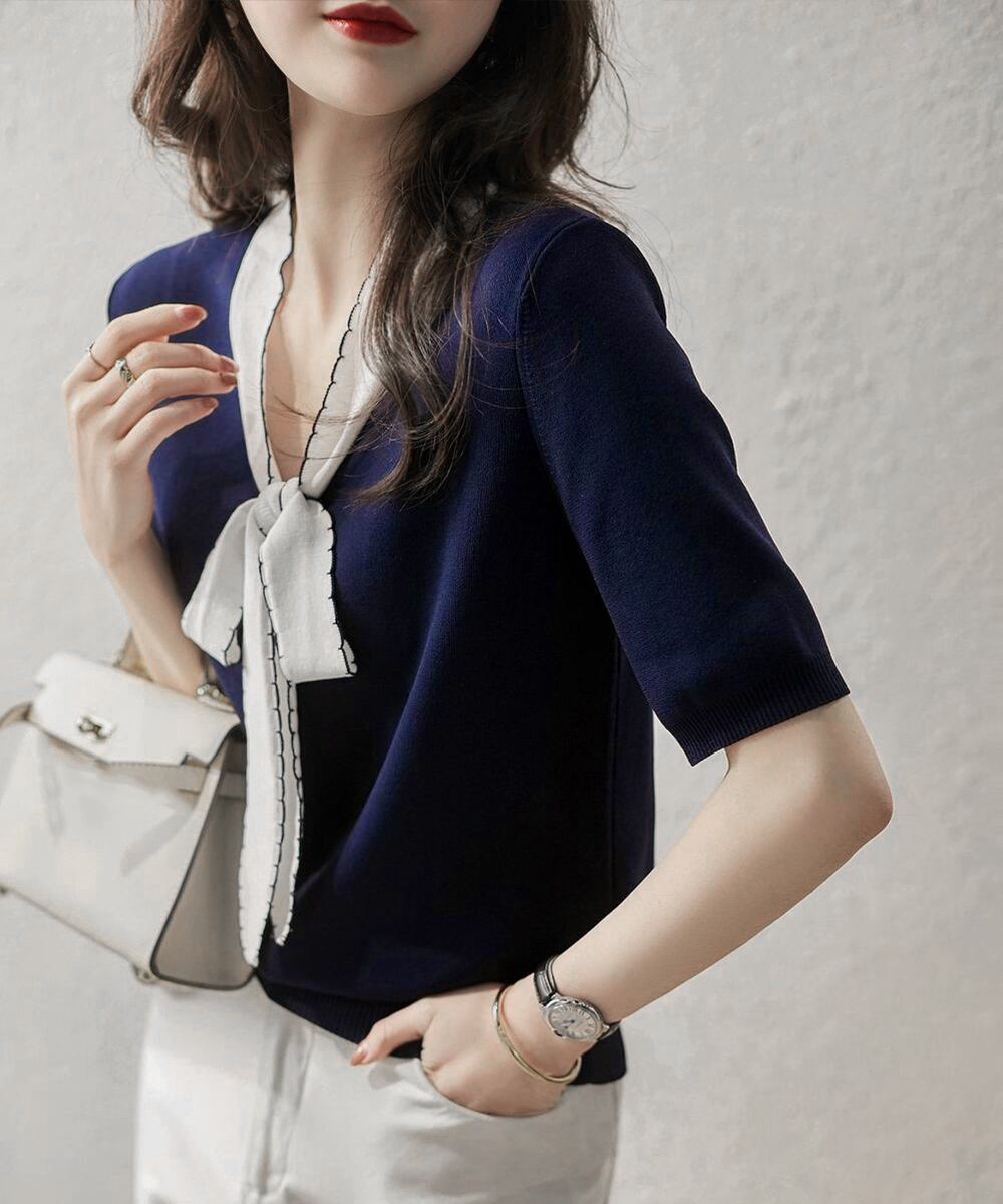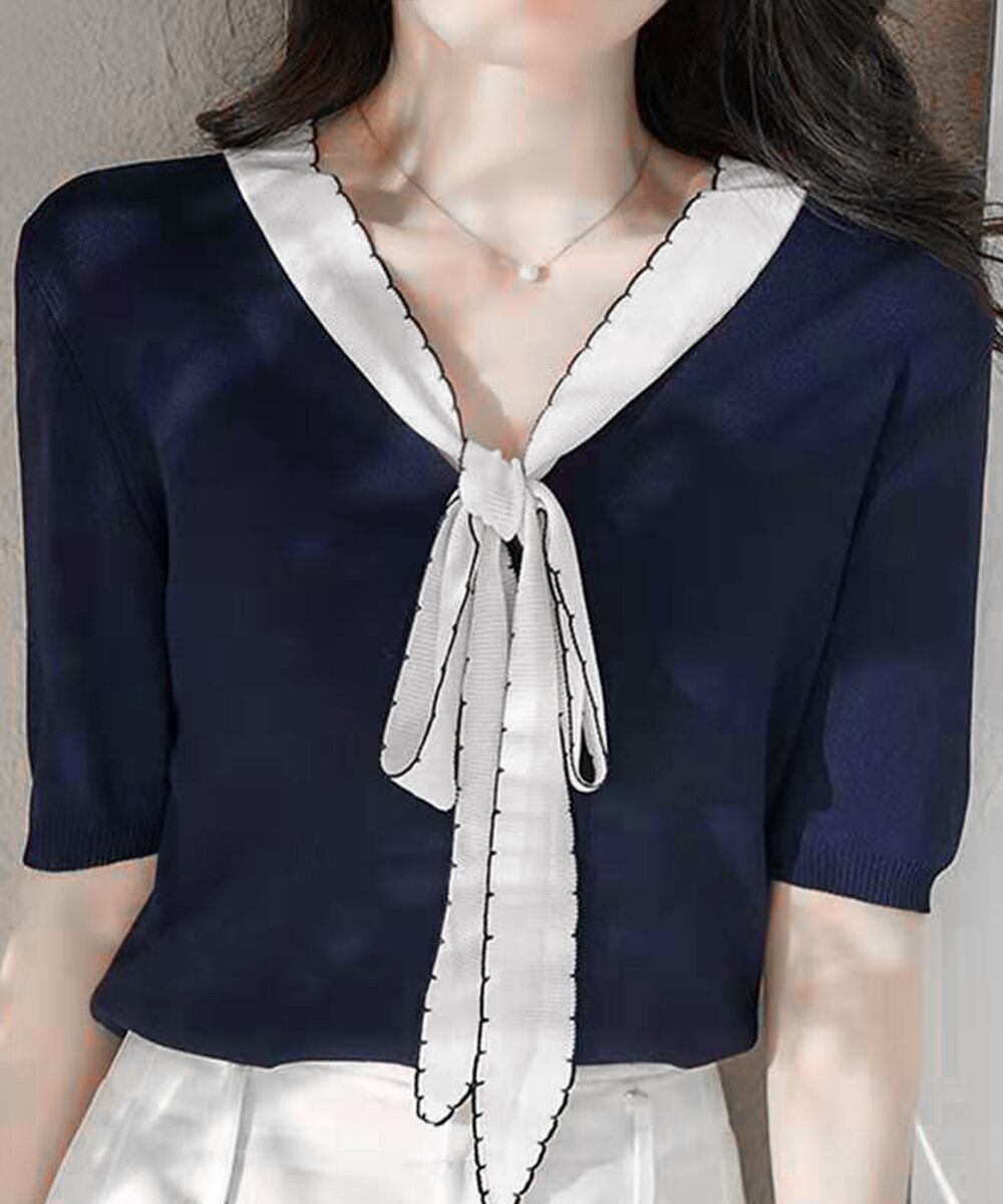 【日本倉庫からの発送】 ボウタイニット リボンタイ サマーニット #[2XUAN-003_20400]【送料込み】【250803】