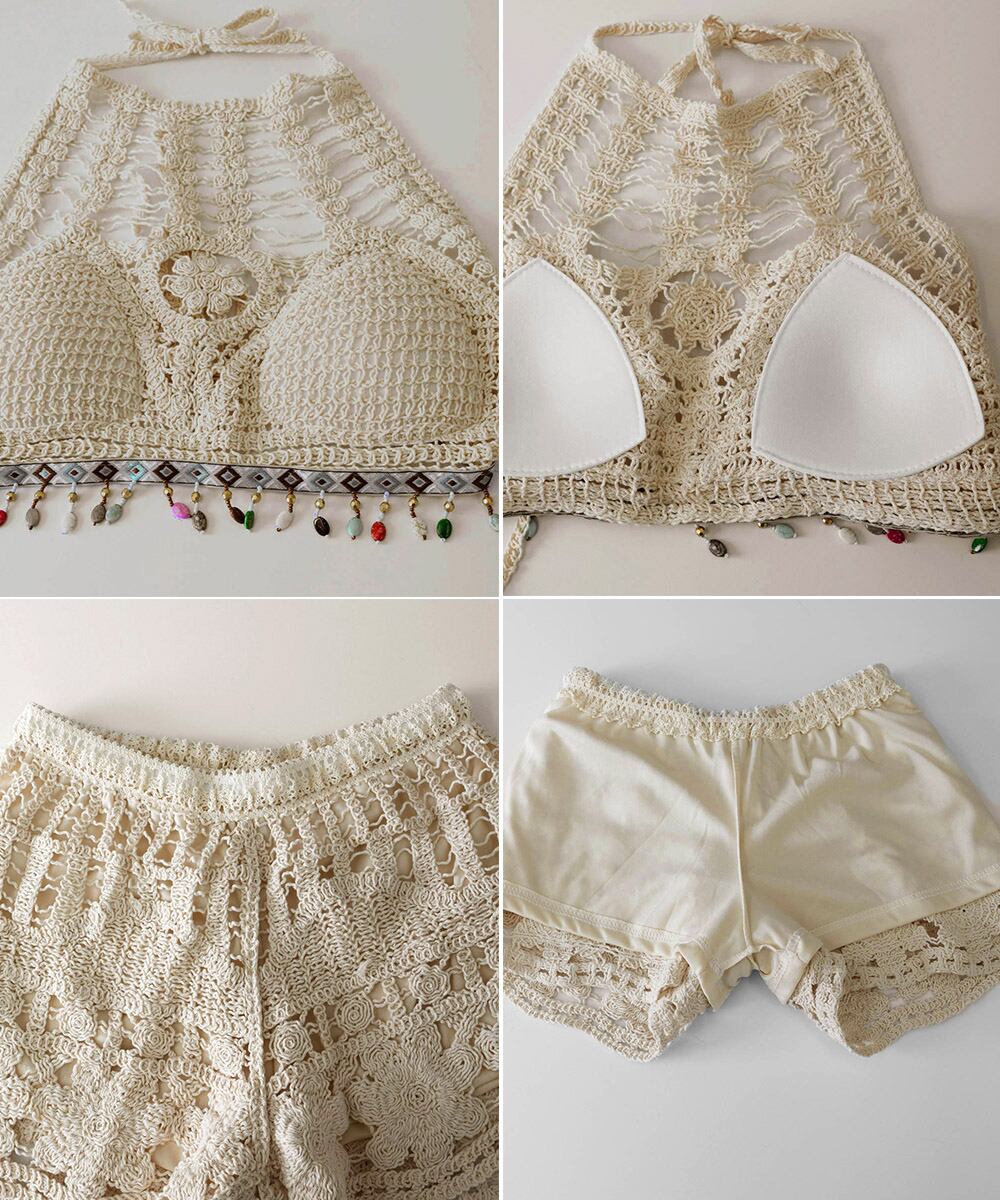 ぬくもりや穏やかなムードを演出するクロシェ編みの水着3点セット