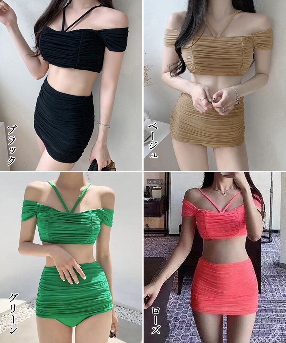 盛れる水着 着やせ オフショル水着人気 海水浴夏休みプール