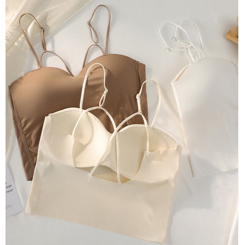【海外からの取り寄せ】2024新作 インナーキャミ ブラトップ インナー 下着 一体型パッド パッドつき 冷感素材 調整可能 黒 #[inner205_7800]【送料込み】【250615】
