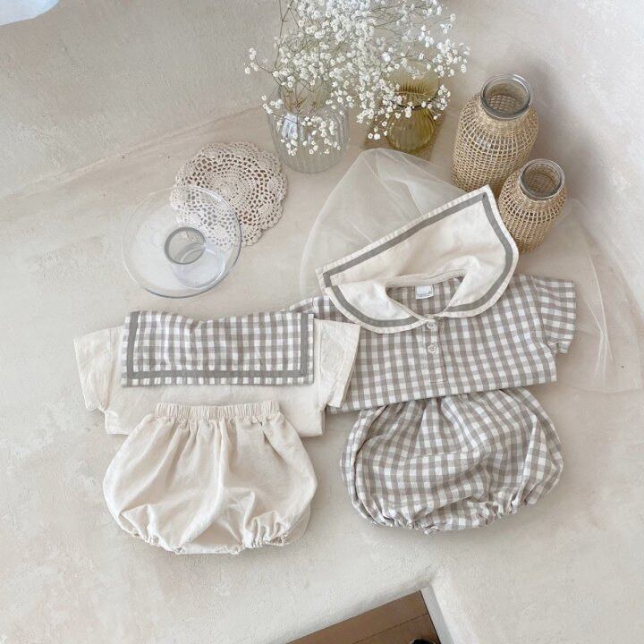【海外からの取り寄せ】ins 春夏 韓国子供服 セットアップ シャツ 短パン 男女兼用 2点セット カジュアル ベビー服 #[ckd1093378_15400]【送料込み】【250517】