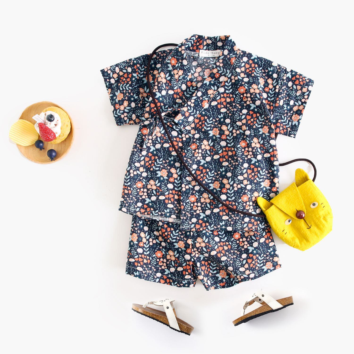 【海外からの取り寄せ】2024夏新作 和風 子供服 セットアップ 半袖 前開き 花柄 綿100 可愛い 甚平 2点セット 涼しい #[ckd1093283_15900]【送料込み】【250618】