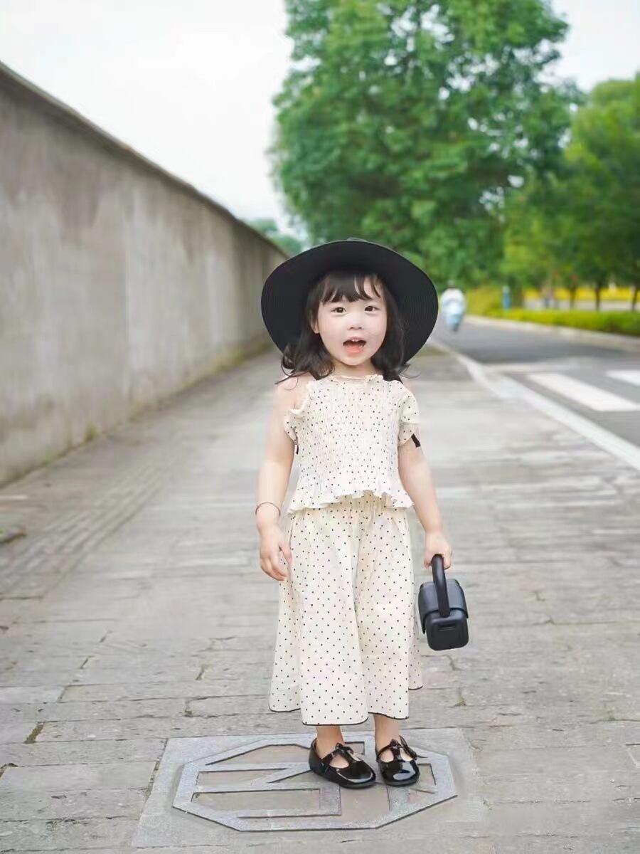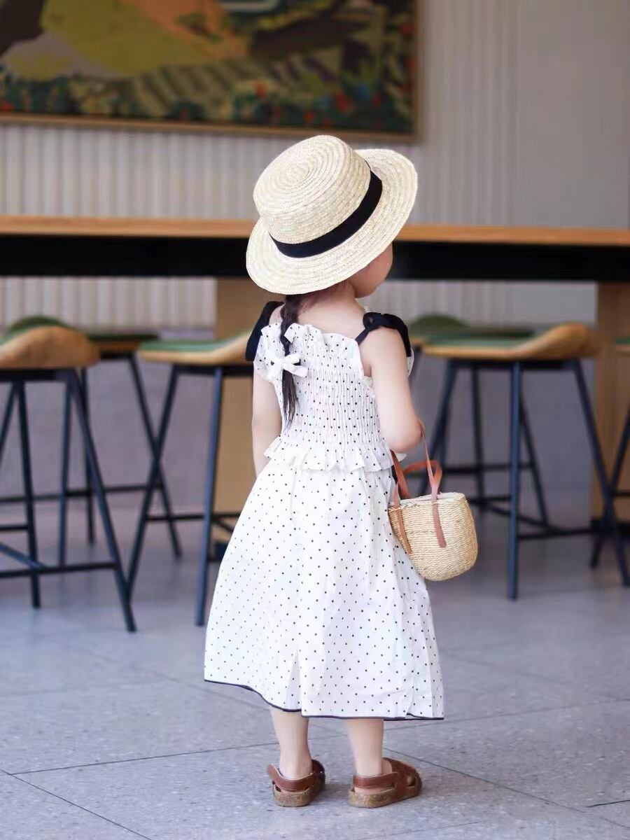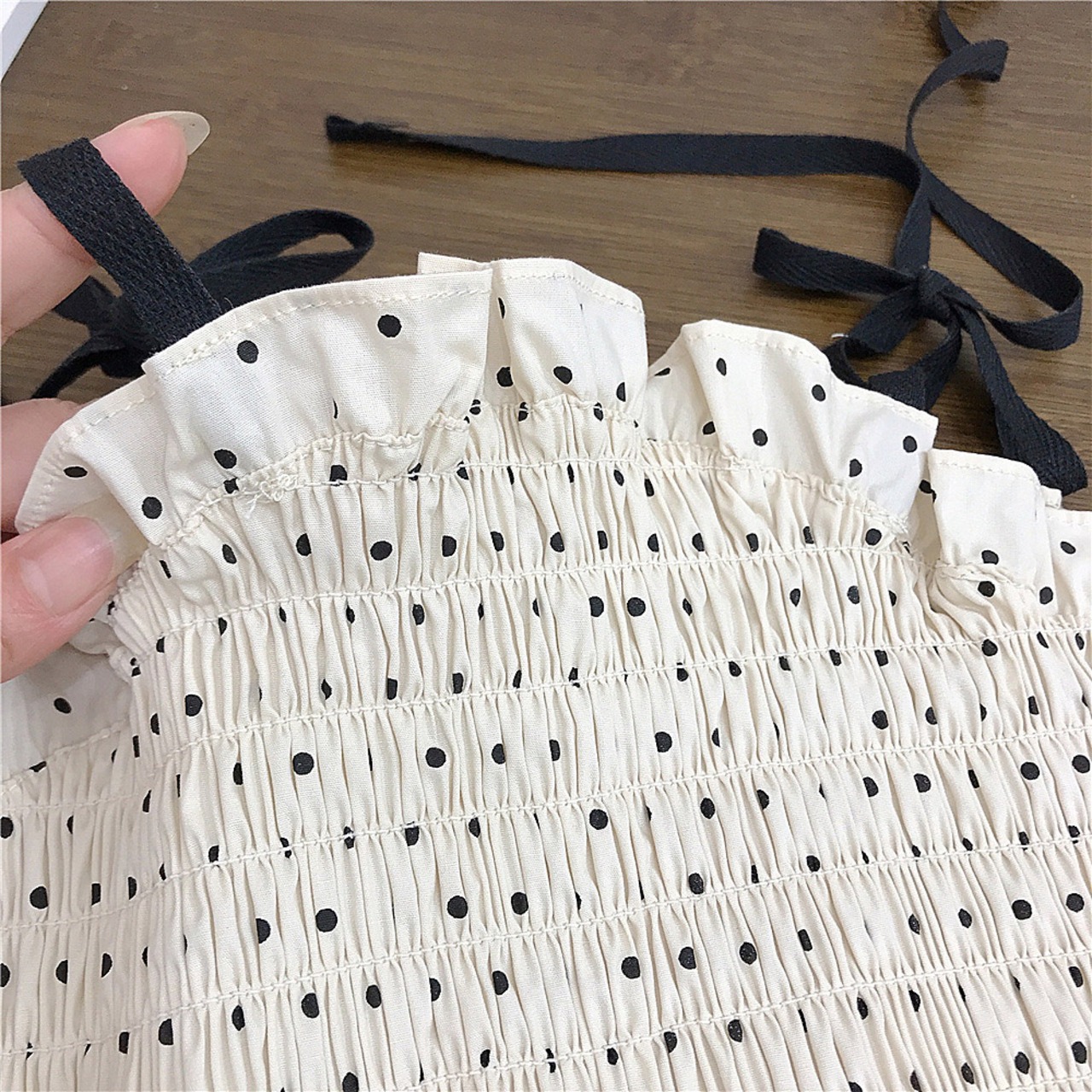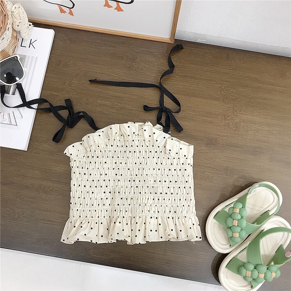 【海外からの取り寄せ】2024新作 韓国子供服 子供 キッズ ノースリーブ トップス 水玉 ドット 肩リボン 裾フリル ホワイト 可愛い #[kids741_16800]【送料込み】【250706】