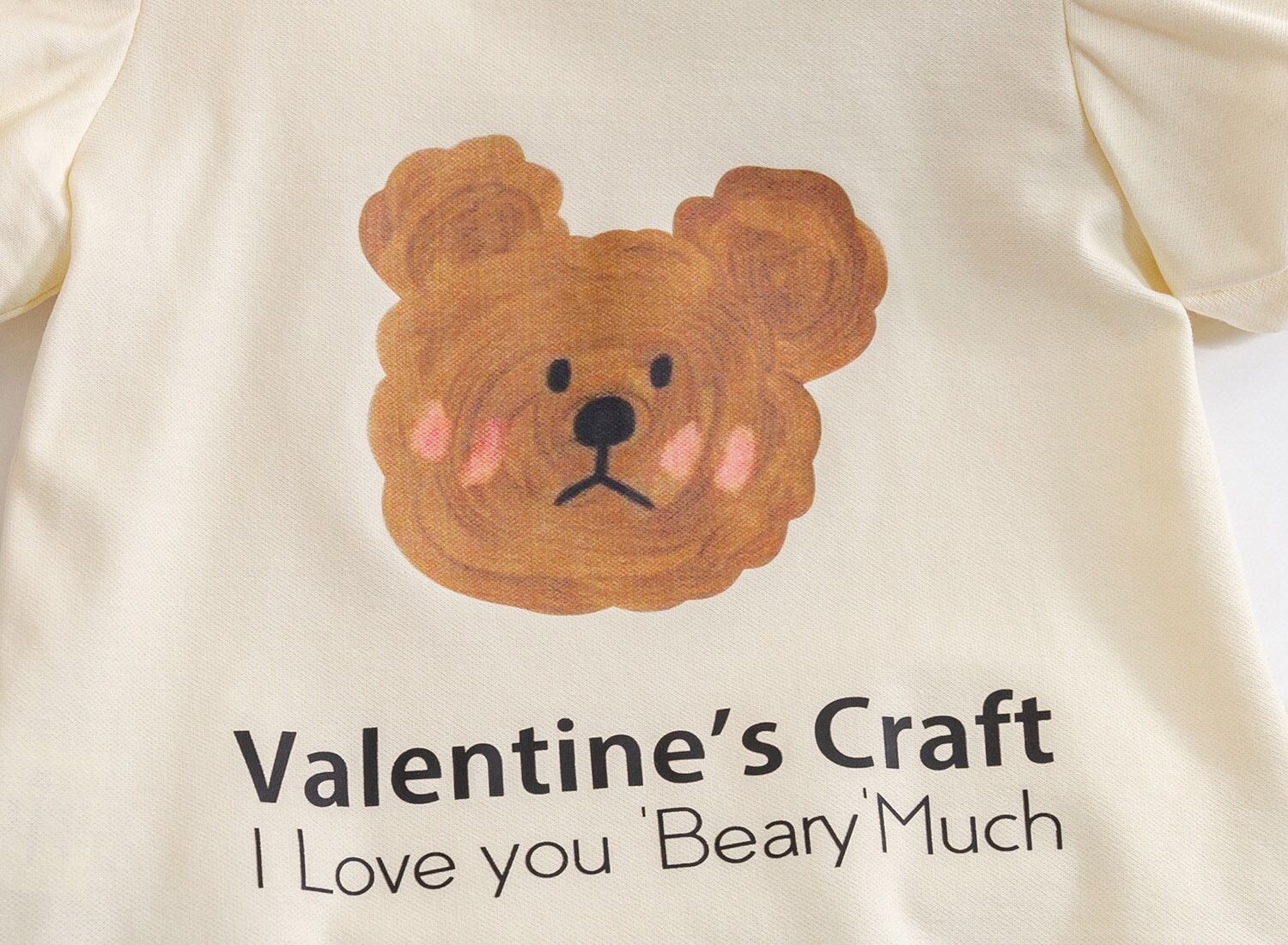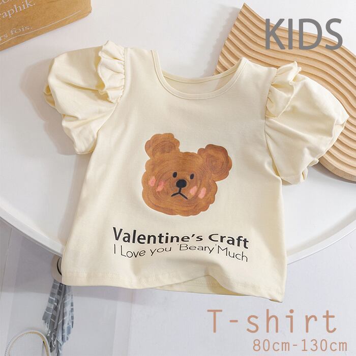 【海外からの取り寄せ】2024新作 韓国子供服 子供 キッズ 女児 トップス パフ袖 肩フリル くま クマ ベア パフスリーブ 半袖 夏服 #[kids742_8800]【送料込み】【250706】