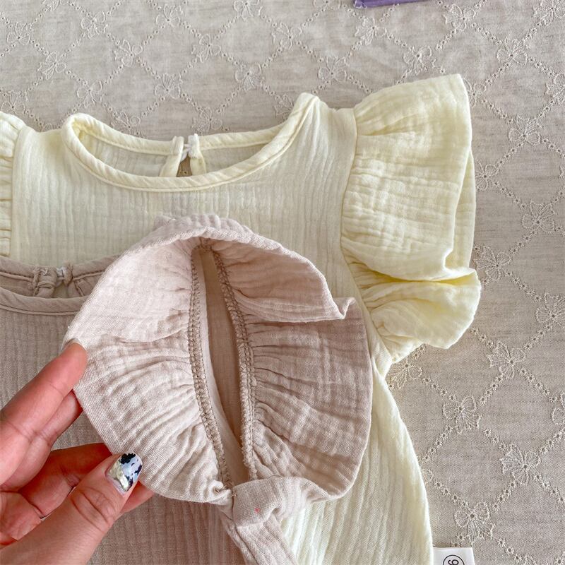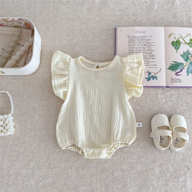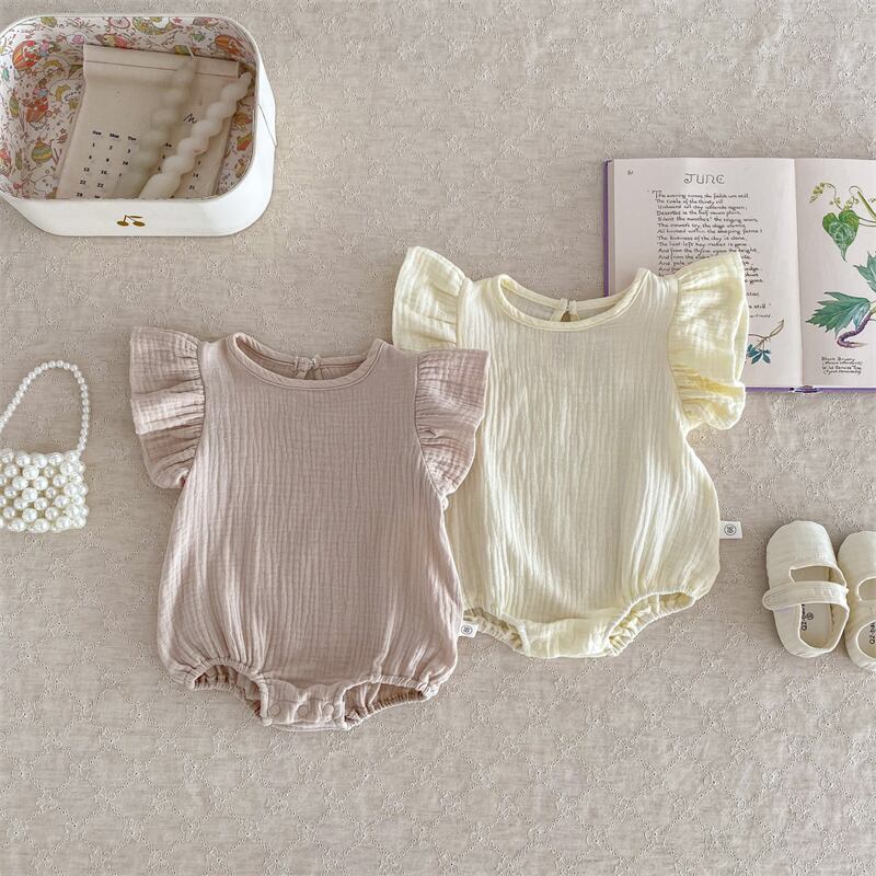 2024夏新作 ベビー服 フラッタースリーブ ロンパース しわしわ カバーオール 可愛い 子供服 無地 #[ckd1093417_13200]【海外倉庫からの発送】 【北海道・沖縄・離島は発送できません】