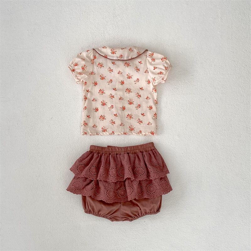 2024夏新作 子供服 女の子 セットアップ ピーターパン襟 半袖 シャツ ブルマー おしゃれ 可愛い #[ckd1093429_19700]【海外倉庫からの発送】 【北海道・沖縄・離島は発送できません】
