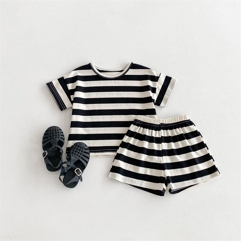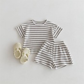 【海外からの取り寄せ】2024夏新作 ベビー服 セットアップ 半袖Tシャツ ショートパンツ ボーダー柄 可愛い 子供服 柔らか #[ckd1093420_13700]【送料込み】【250517】