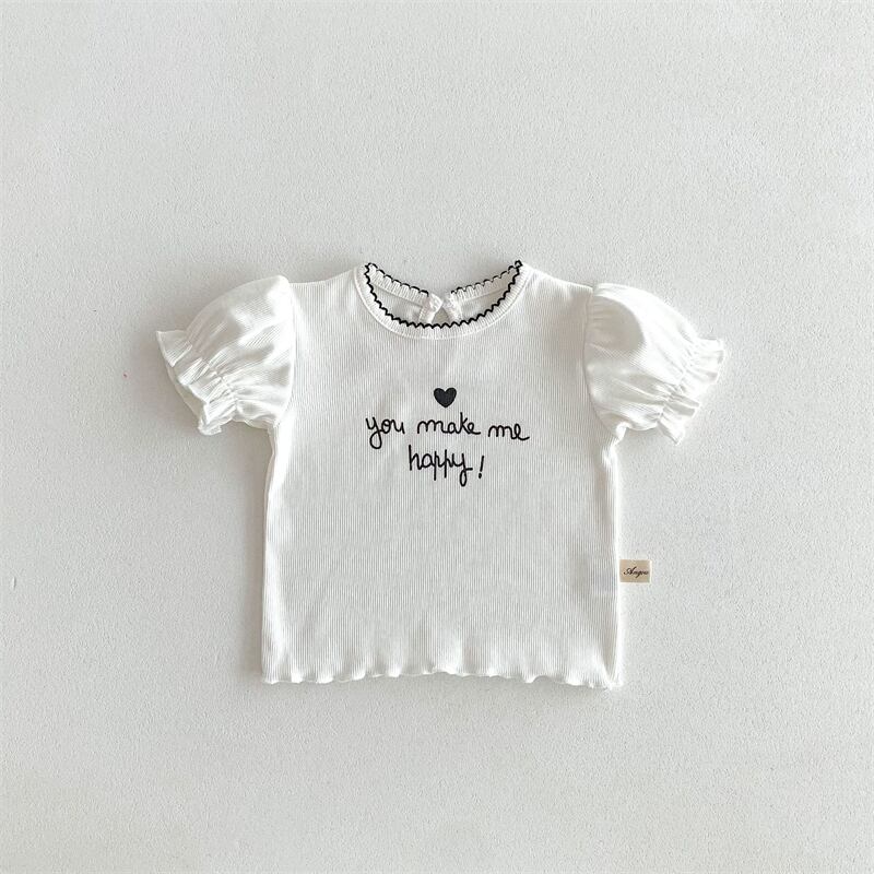 【海外からの取り寄せ】2024夏新作 ベビー服 女の子 パフスリーブ 半袖Tシャツ カジュアル 英字 トップス 柔らか フリル #[ckd1093422_20600]【送料込み】【250421】